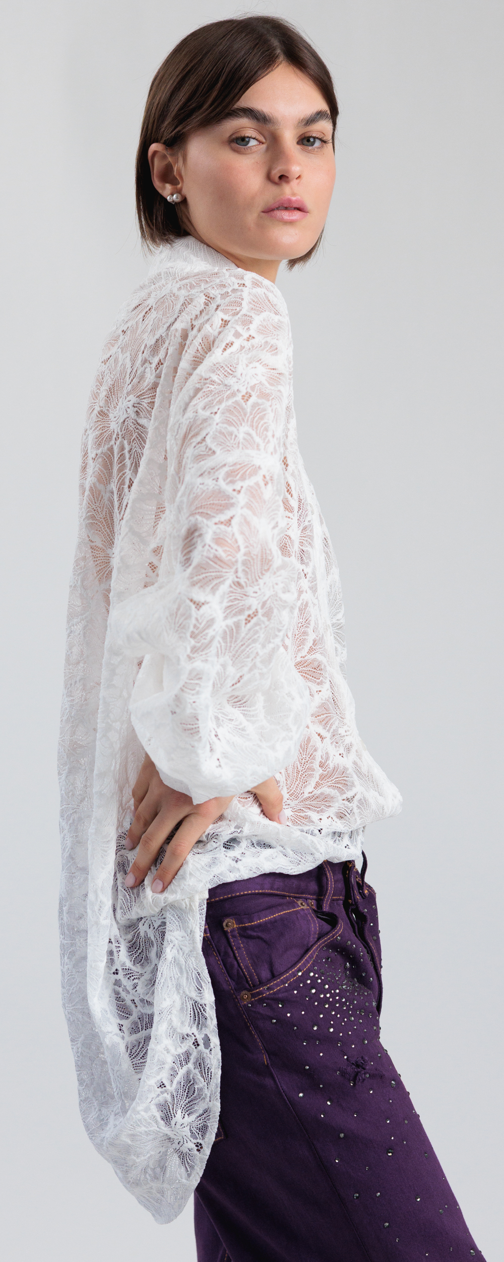 Pizzo bianco con disegni floreali.