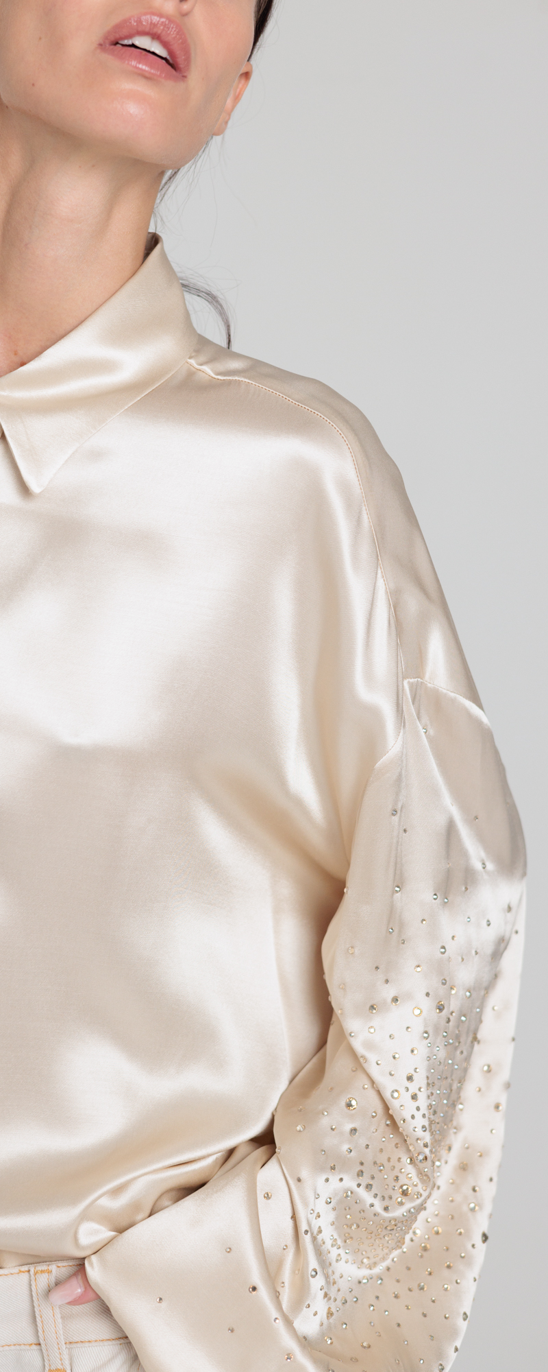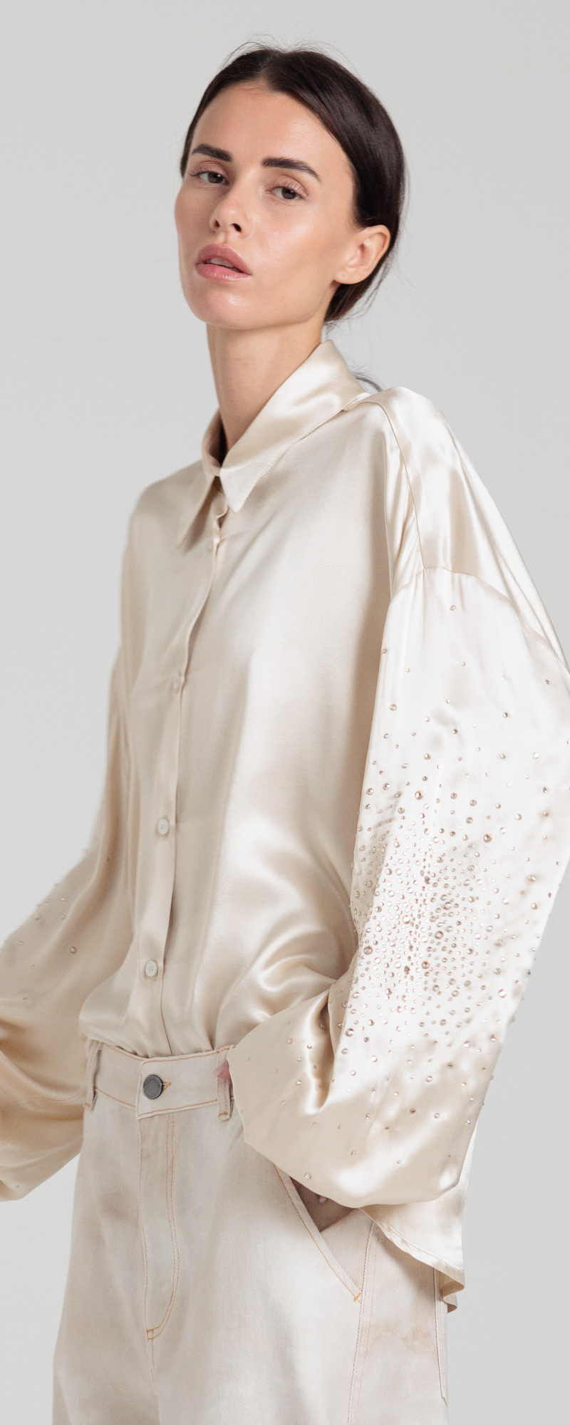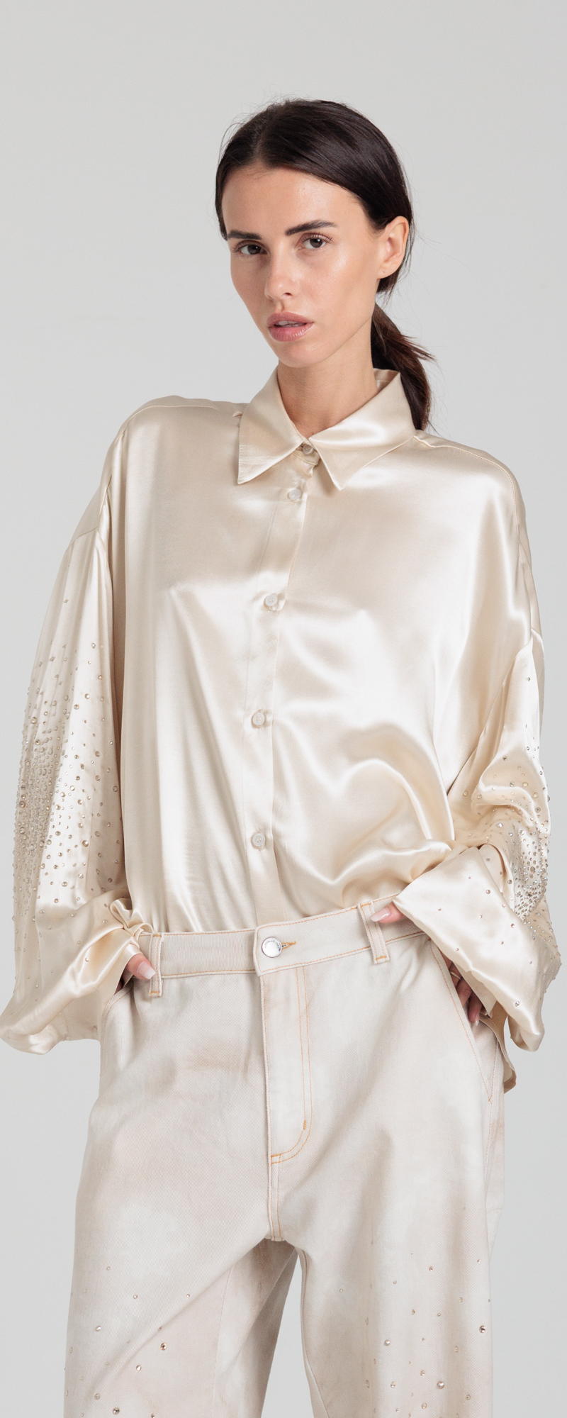 CAMICIA OVERSIZE CHAMPAGNE CON STRASS SHIRT -NW 23S26