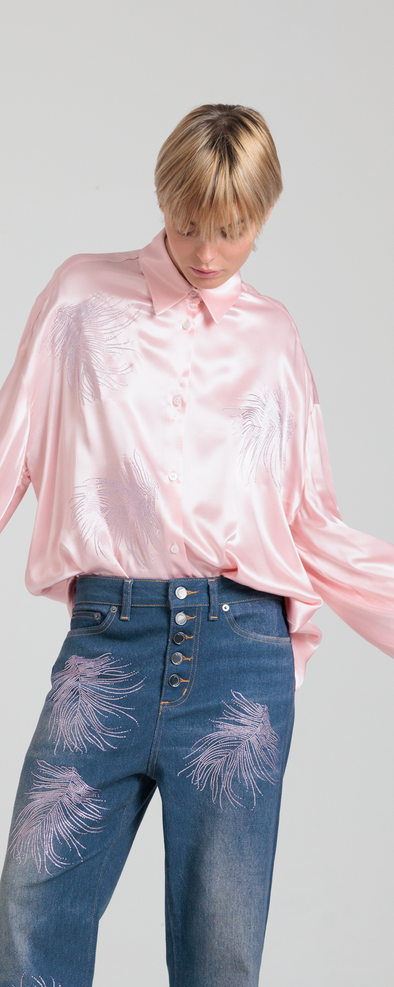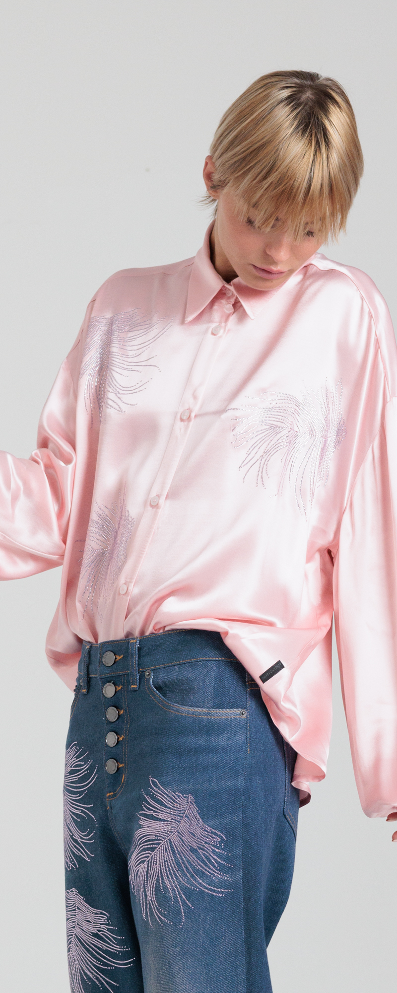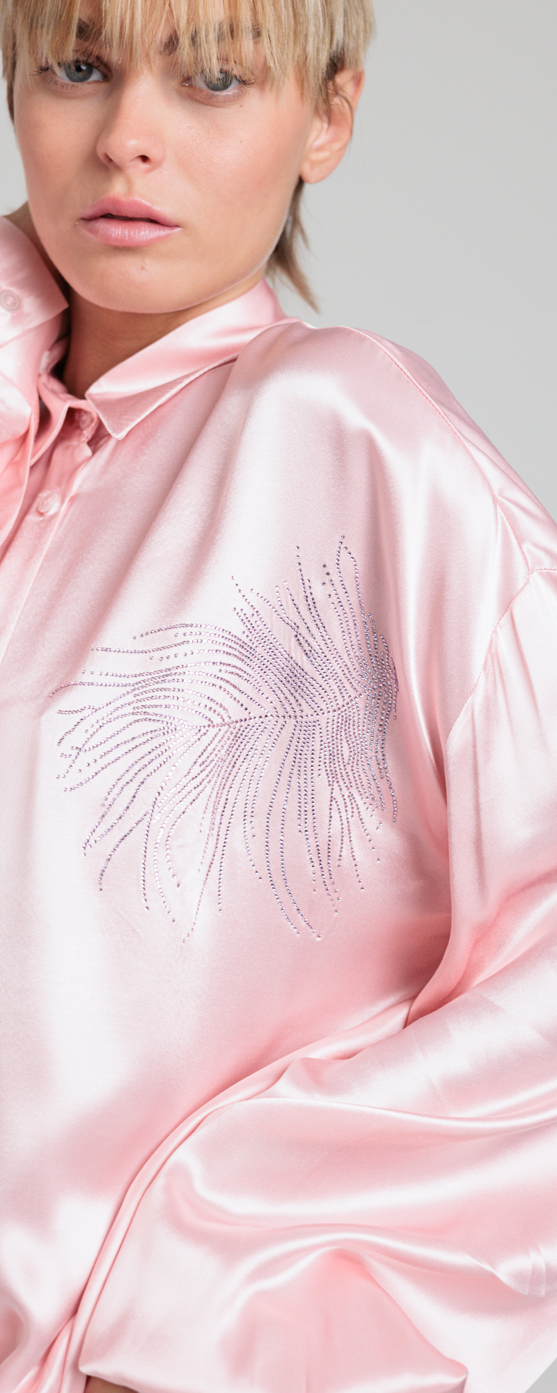 CAMICIA OVERSIZE ROSA CON PIUME IN STRASS SHIRT -NW 22S26