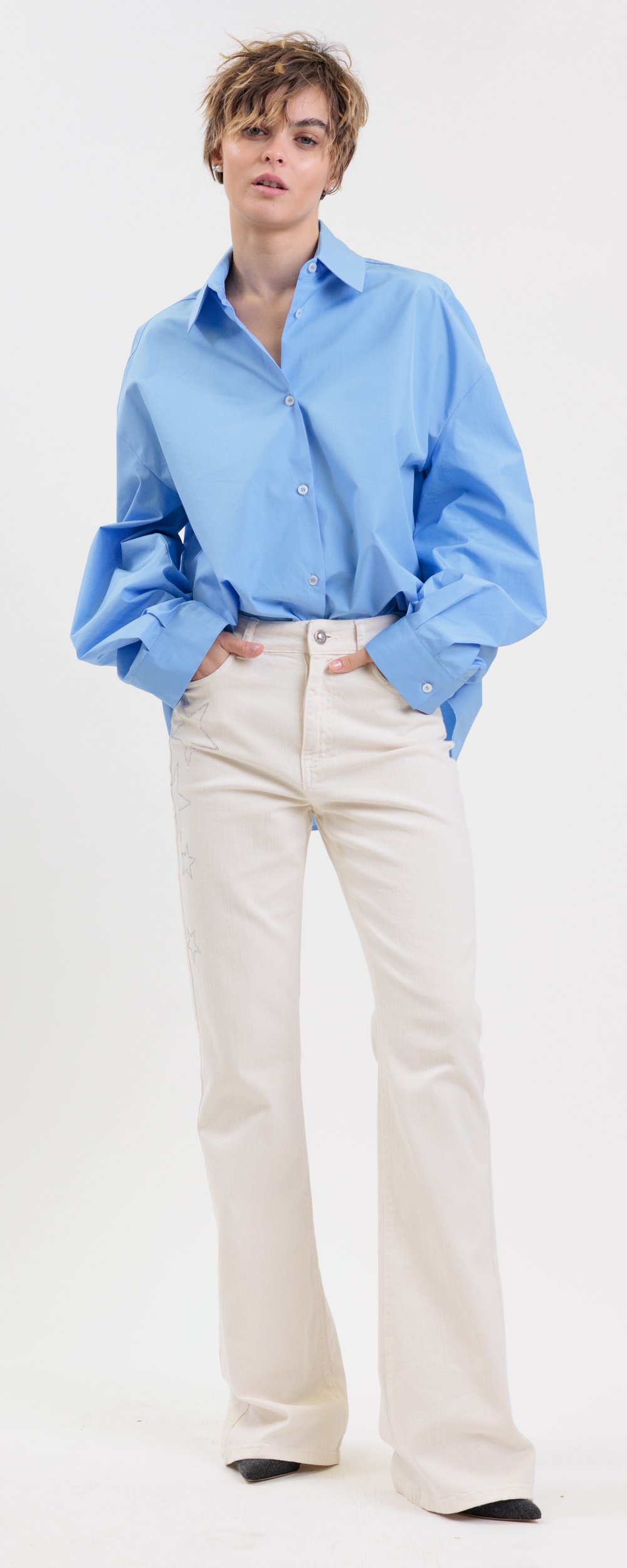 Flared jeans, leggermente a zampa.