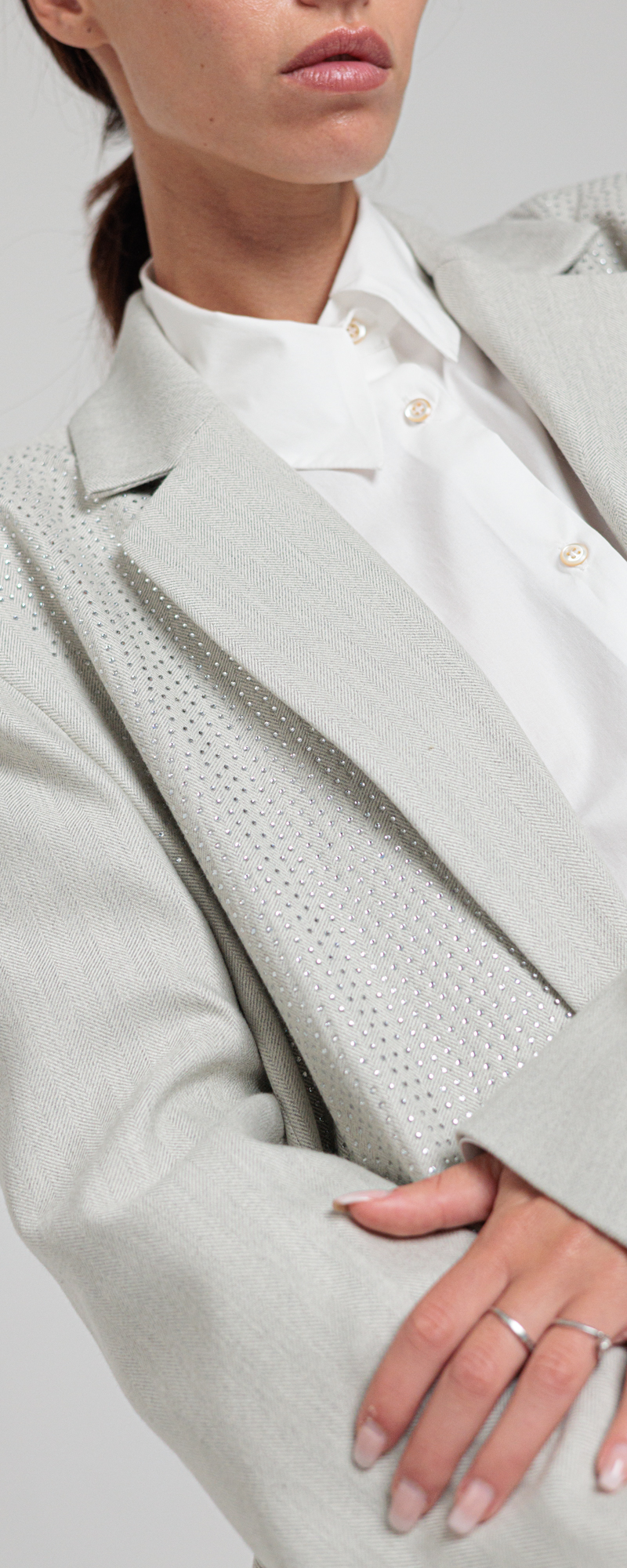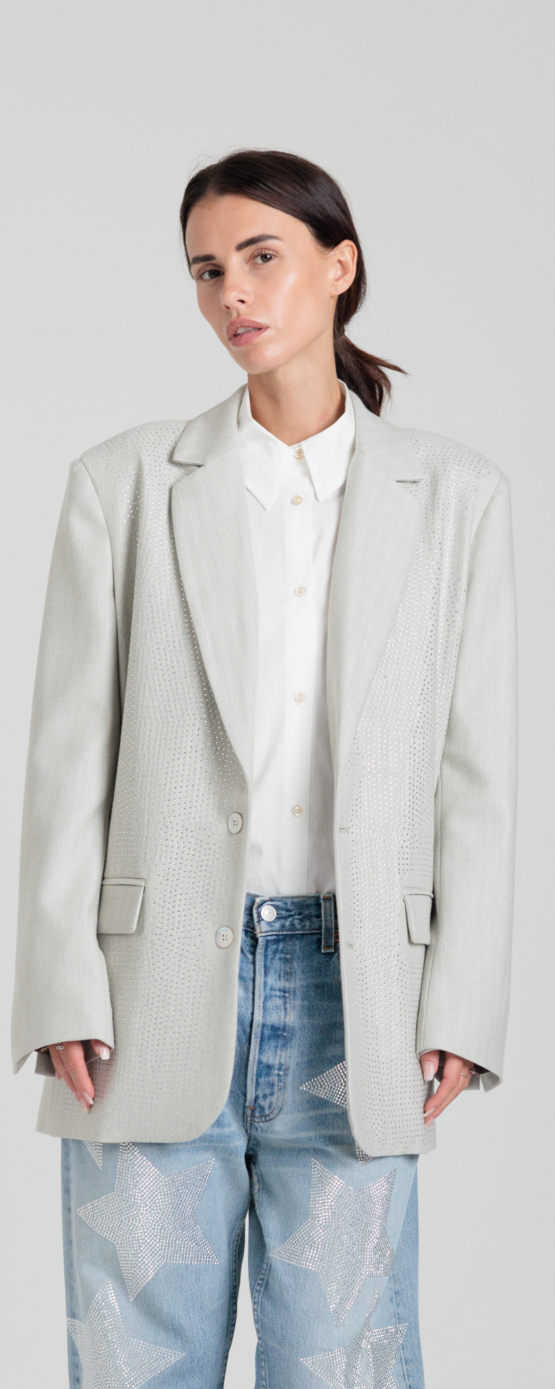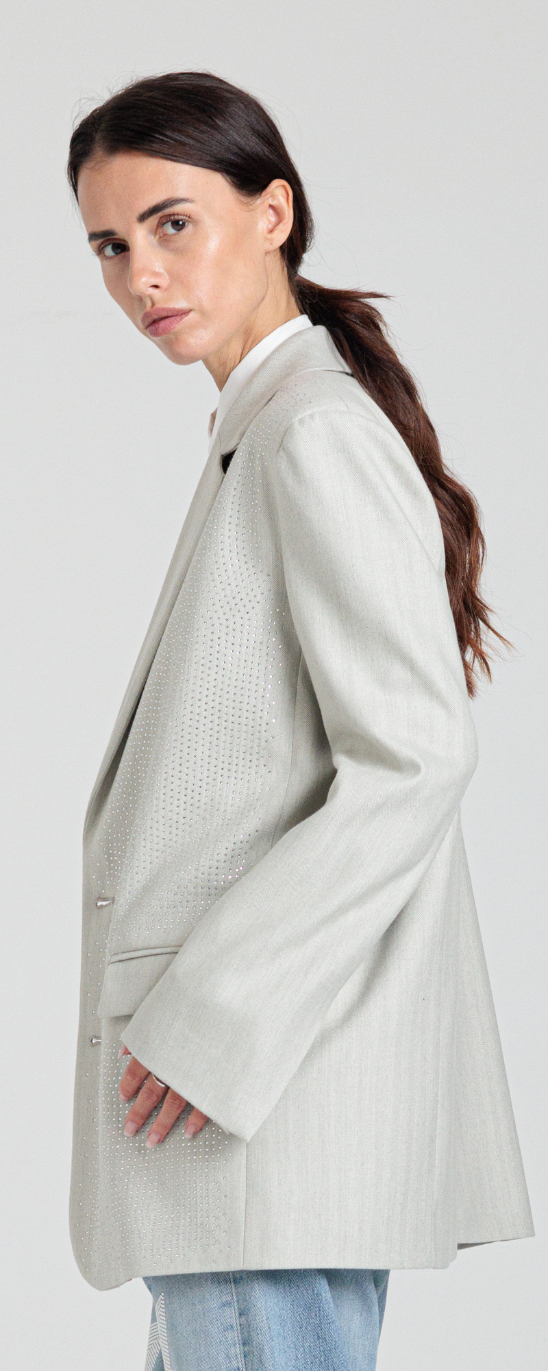 GIACCA GRIGIO PERLA CHIARO MONOPETTO CON STRASS BLAZER 2S26