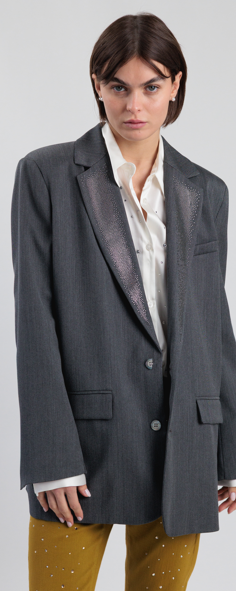 GIACCA MONOPETTO LANA, REVERE CON STRASS BLAZER 4CAPSULESS26