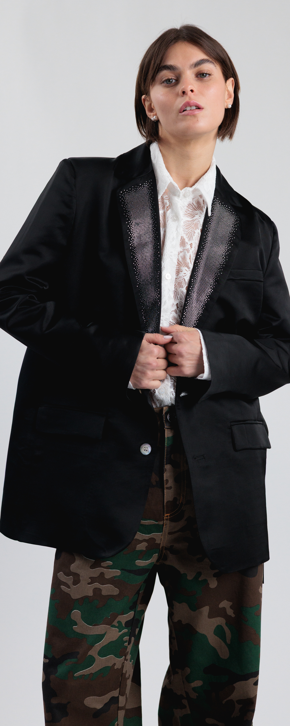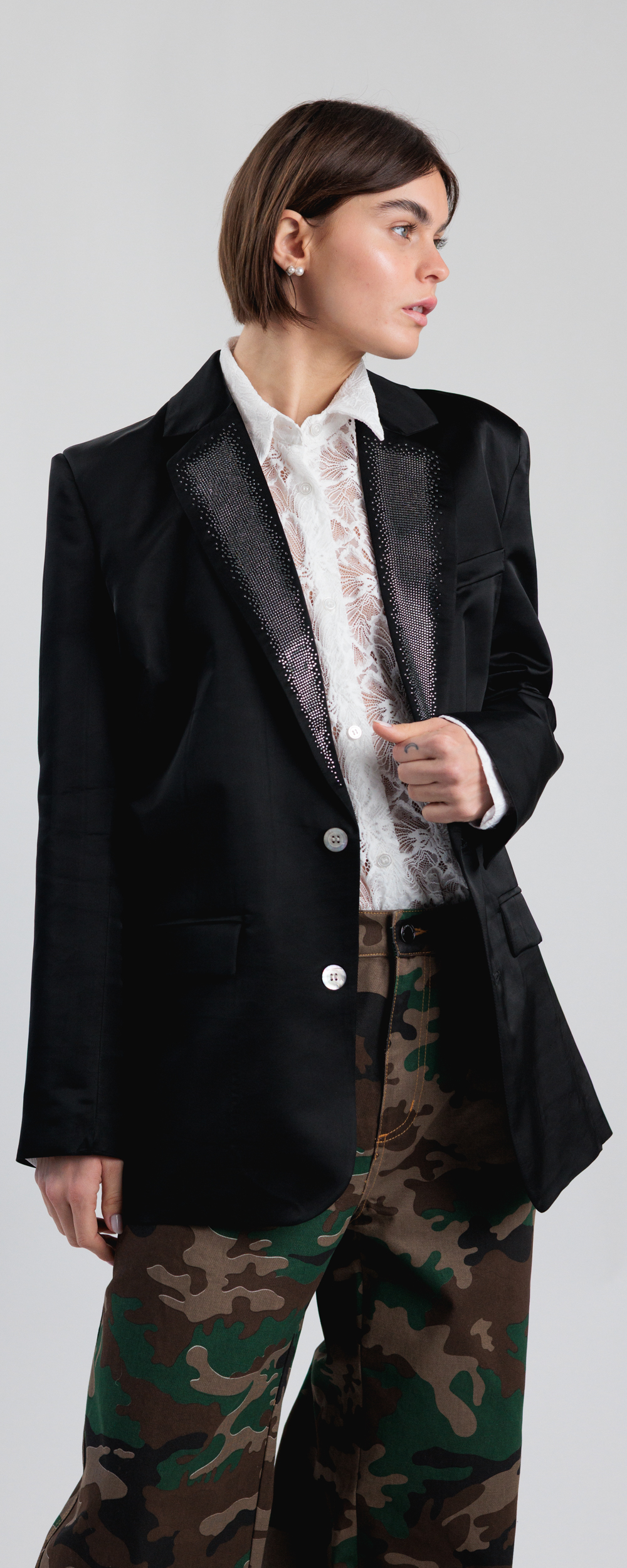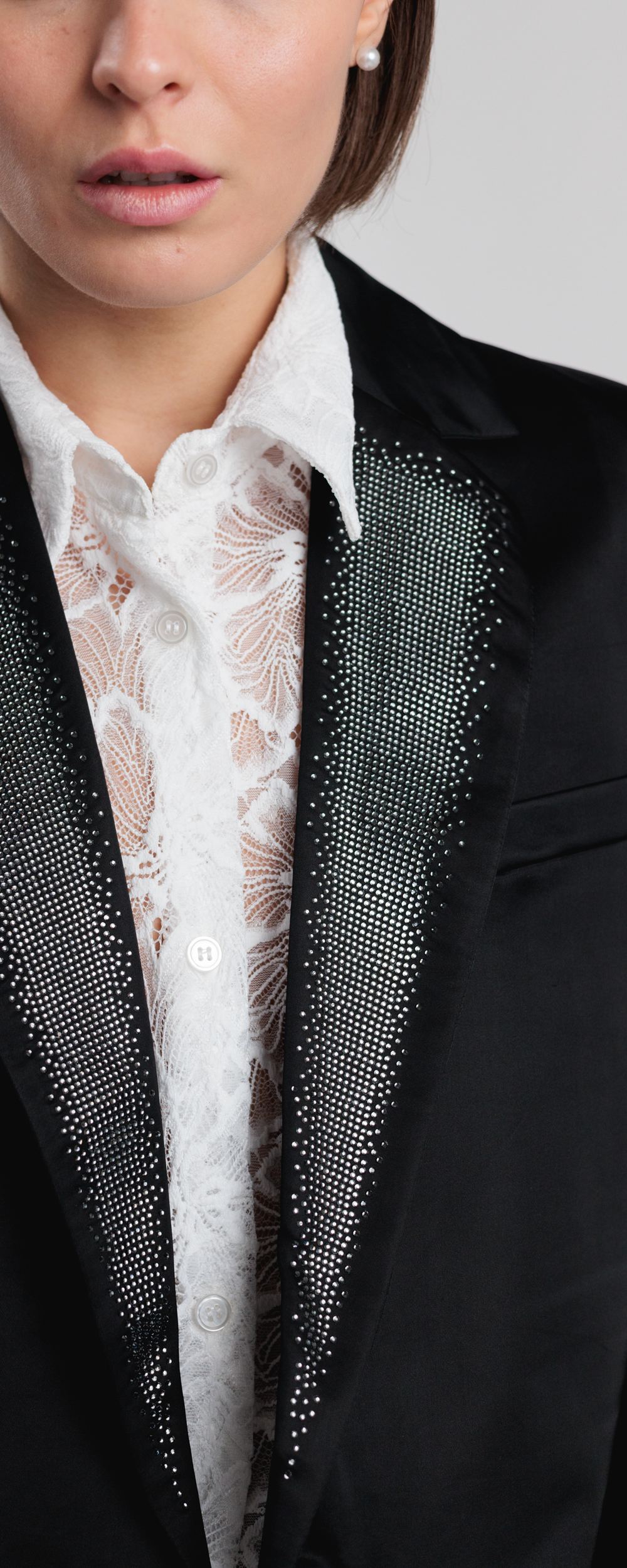 GIACCA MONOPETTO SETA NERA, REVERE CON STRASS BLAZER 2CAPSULESS26