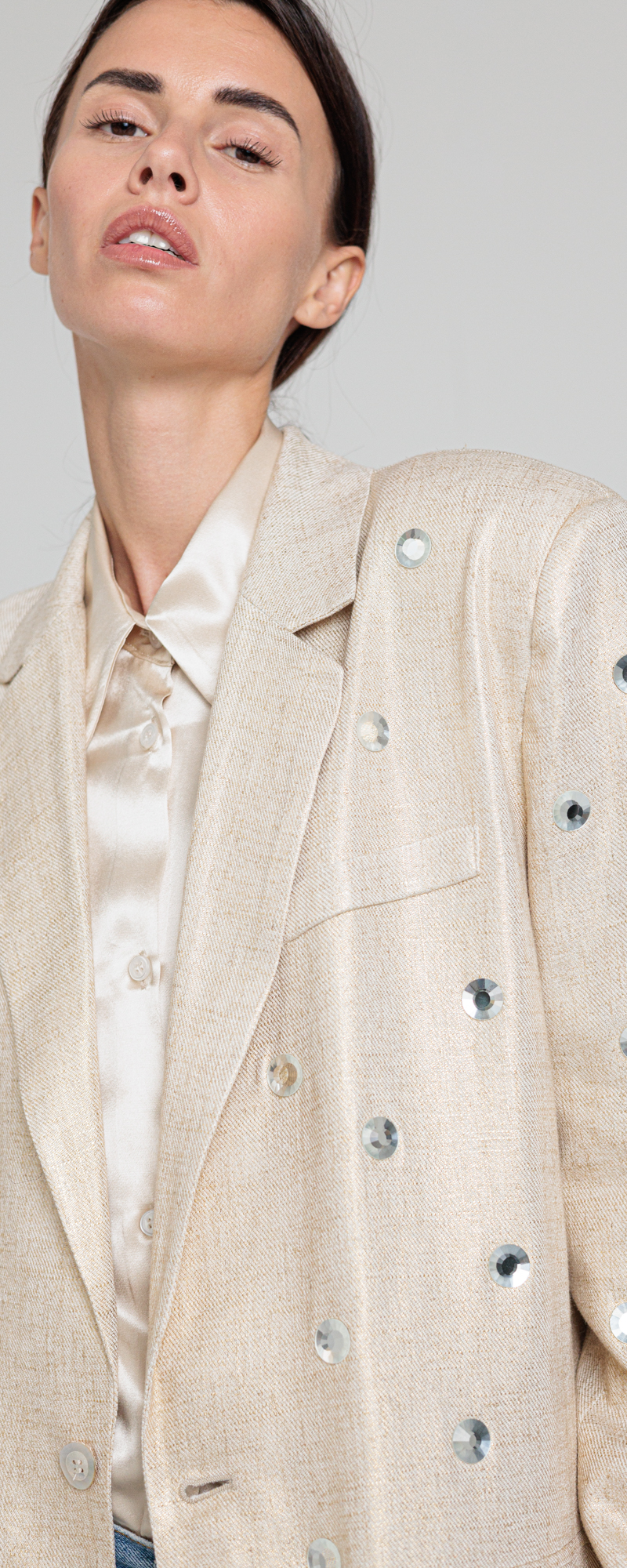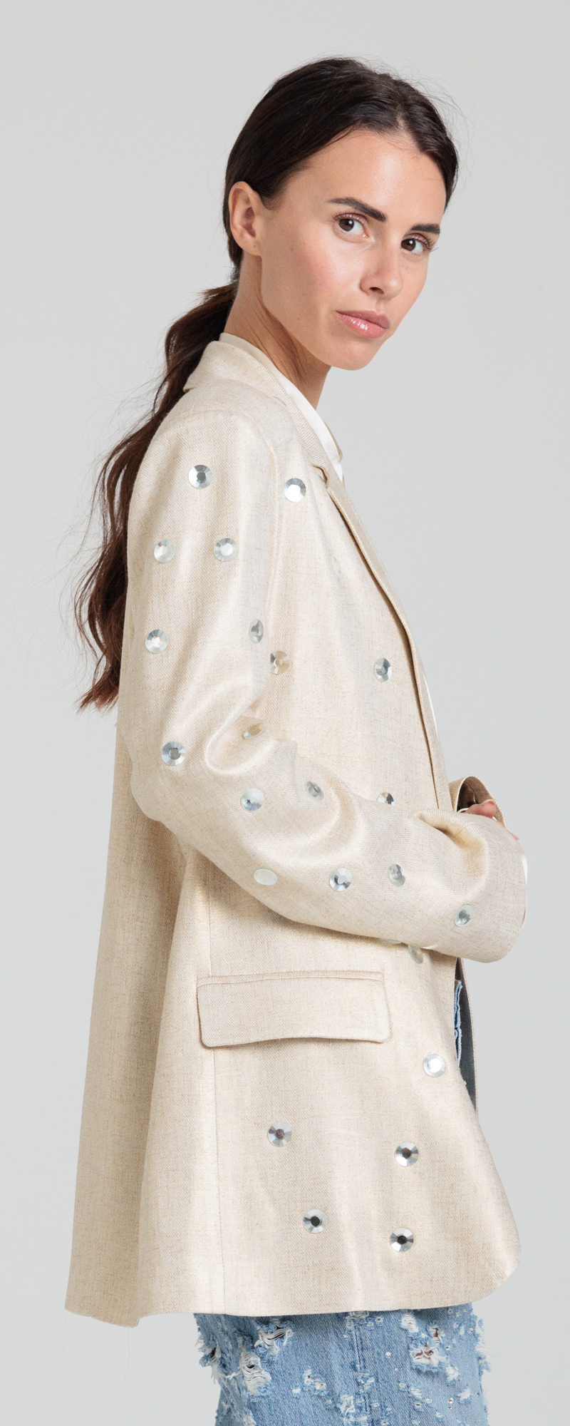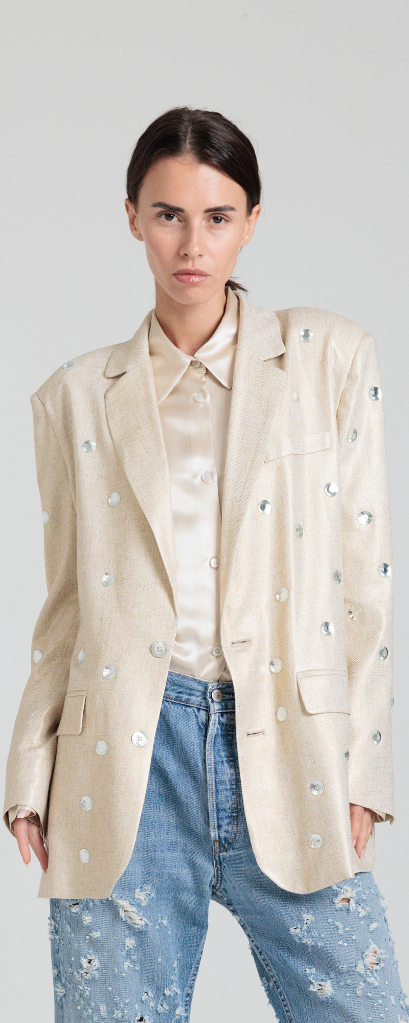 GIACCA SABBIA CHIARO MONOPETTO CON MACRO STRASS BLAZER 3S26