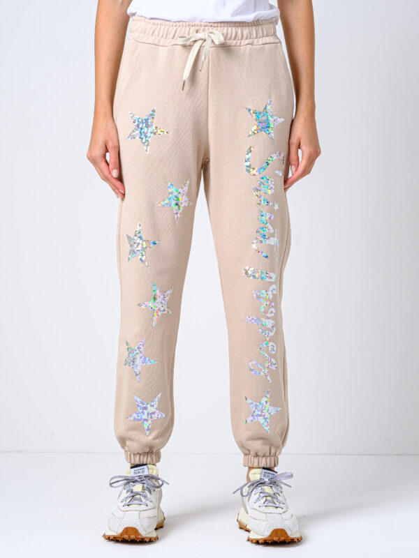 Applicazione di carta iridescente: scritta “Saint Tropez” e stelle fronte e retro.