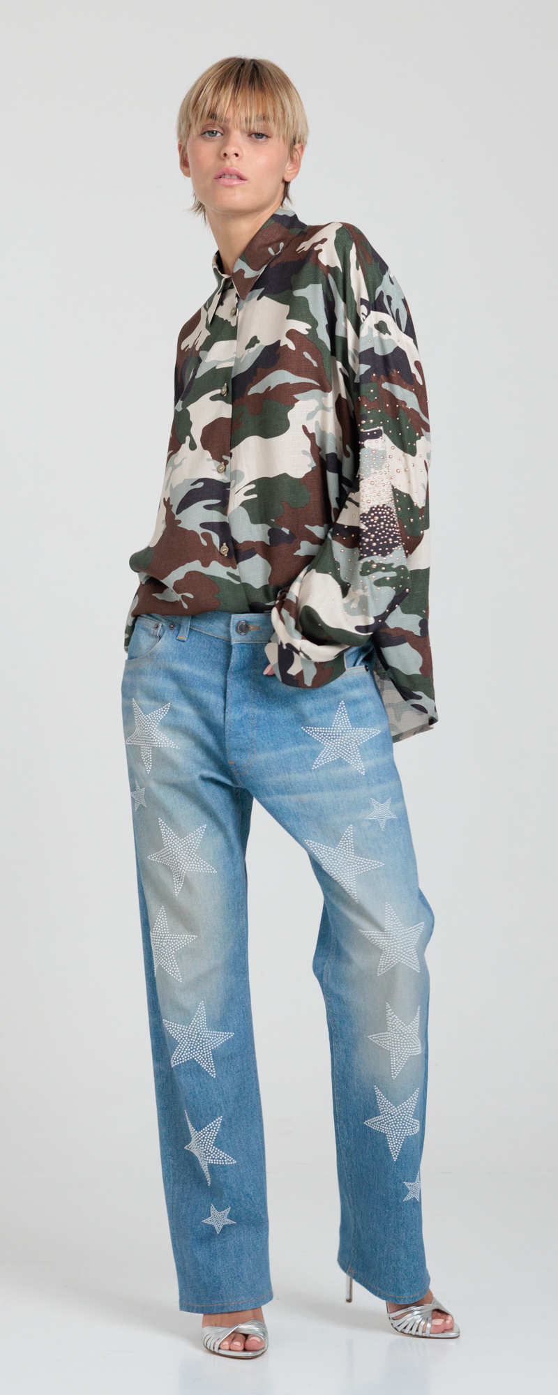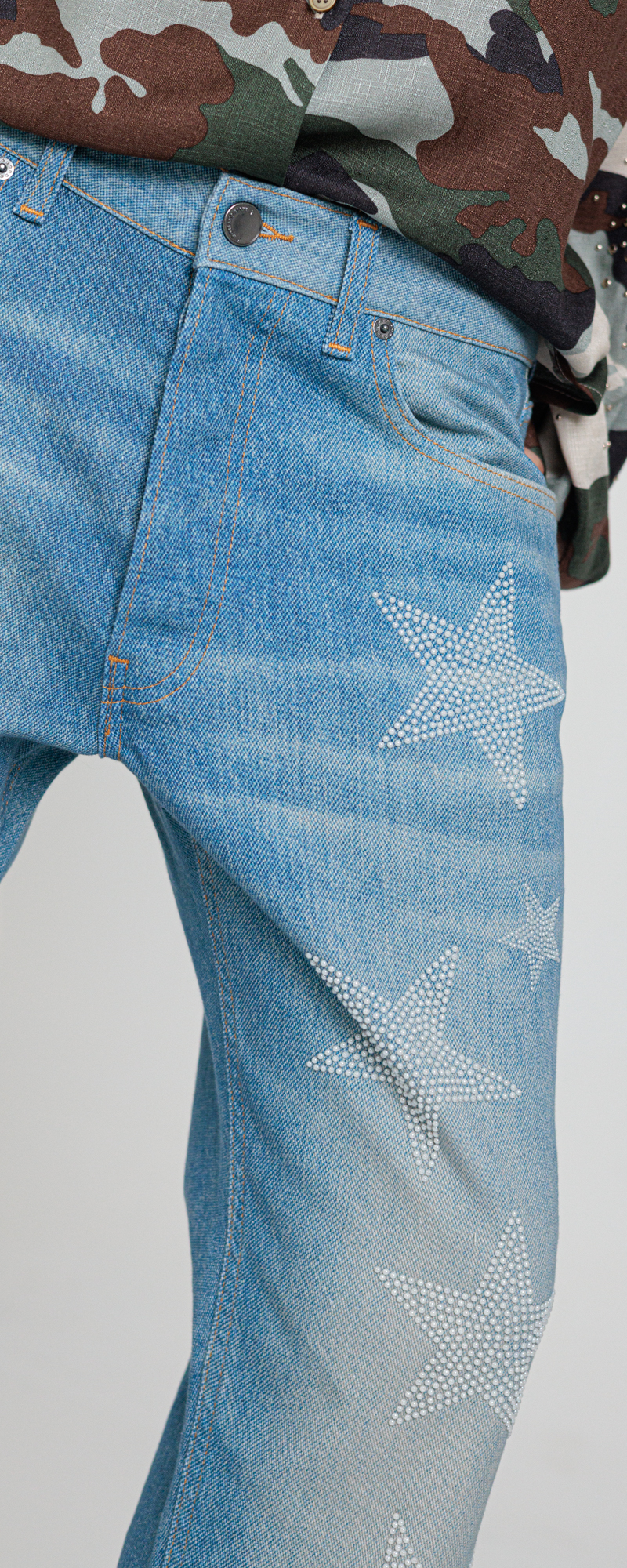Stone washed effetto vintage con dirty grigio chiaro.