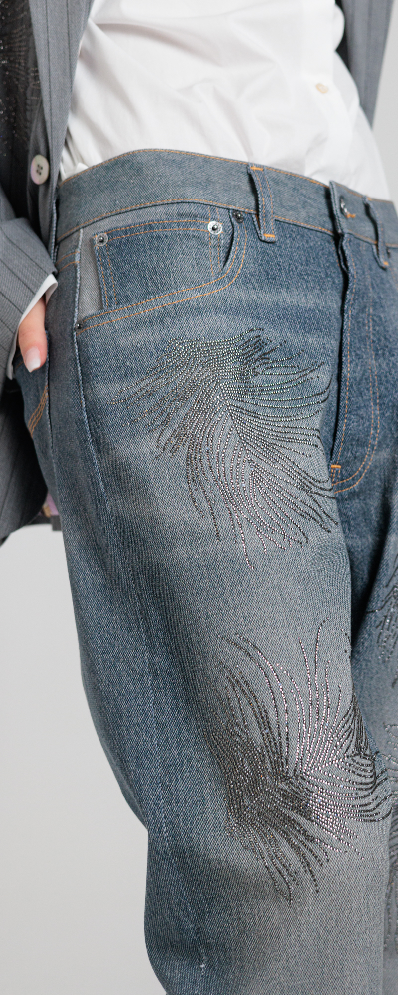 JEANS 5 TASCHE DENIM MEDIO CHIARO CON PIUME IN STRASS LVS051BOY 60S26