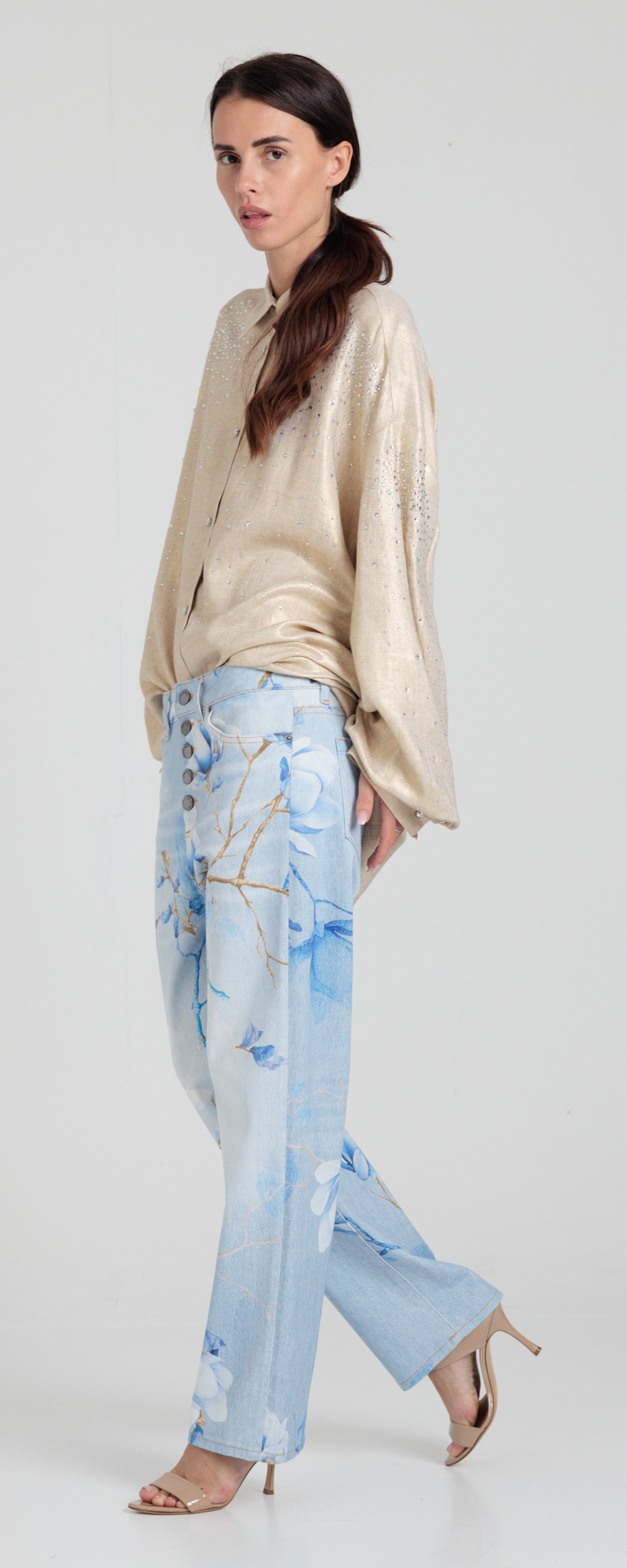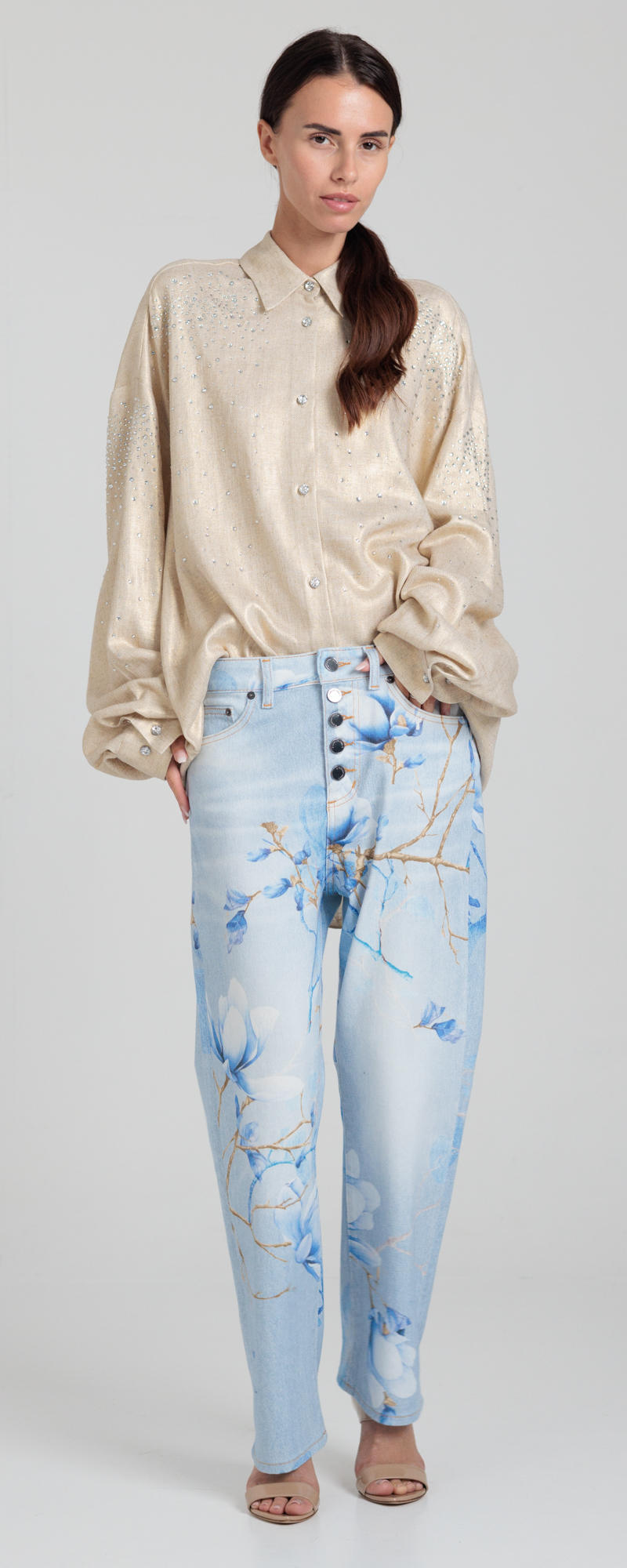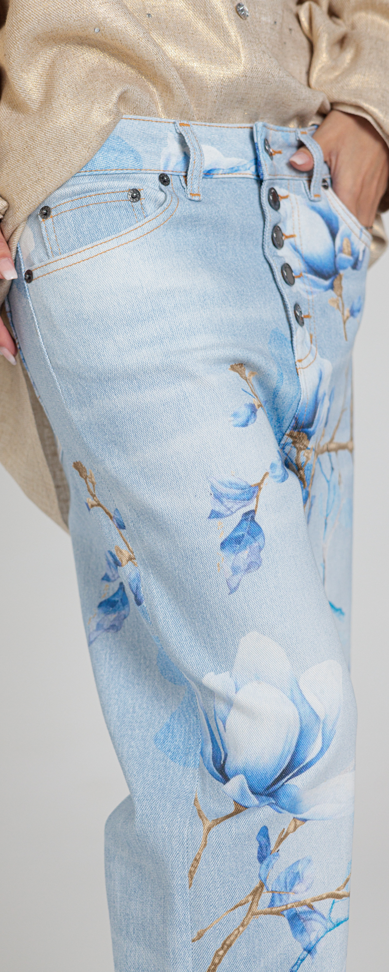 JEANS 5 TASCHE DENIM MEDIO CHIARO CON STAMPA FLOREALE LOOSE 56S26