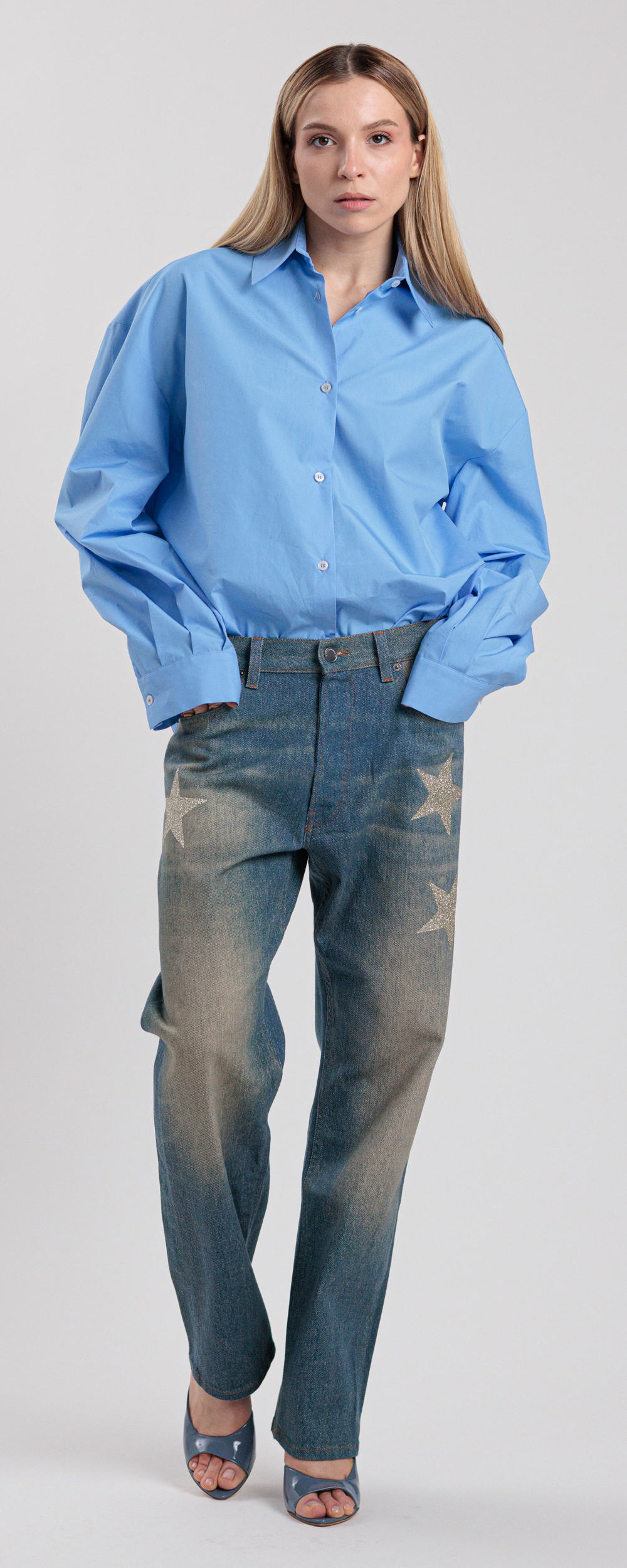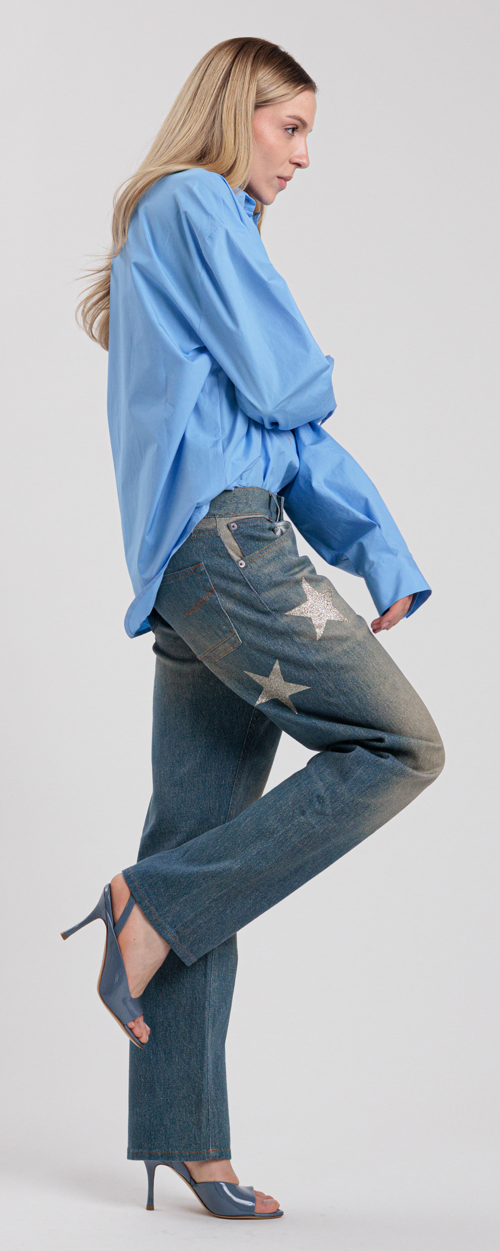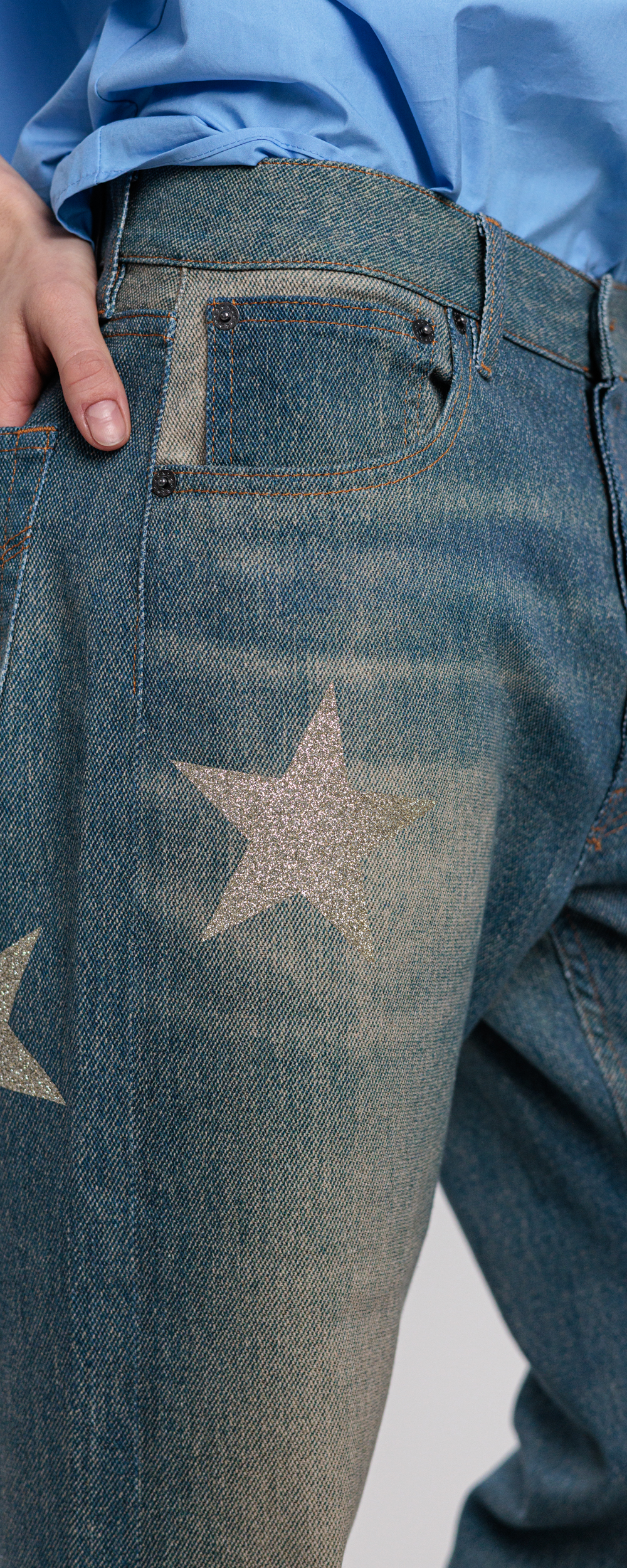 JEANS DENIM BOYFRIEND BLU MEDIO SCURO CON STELLE GLITTER ORO LVS051BOY 4OU2X6