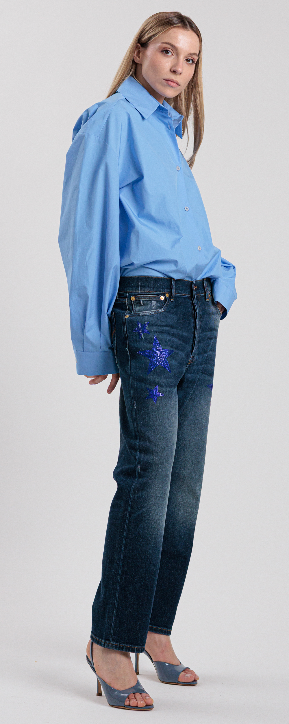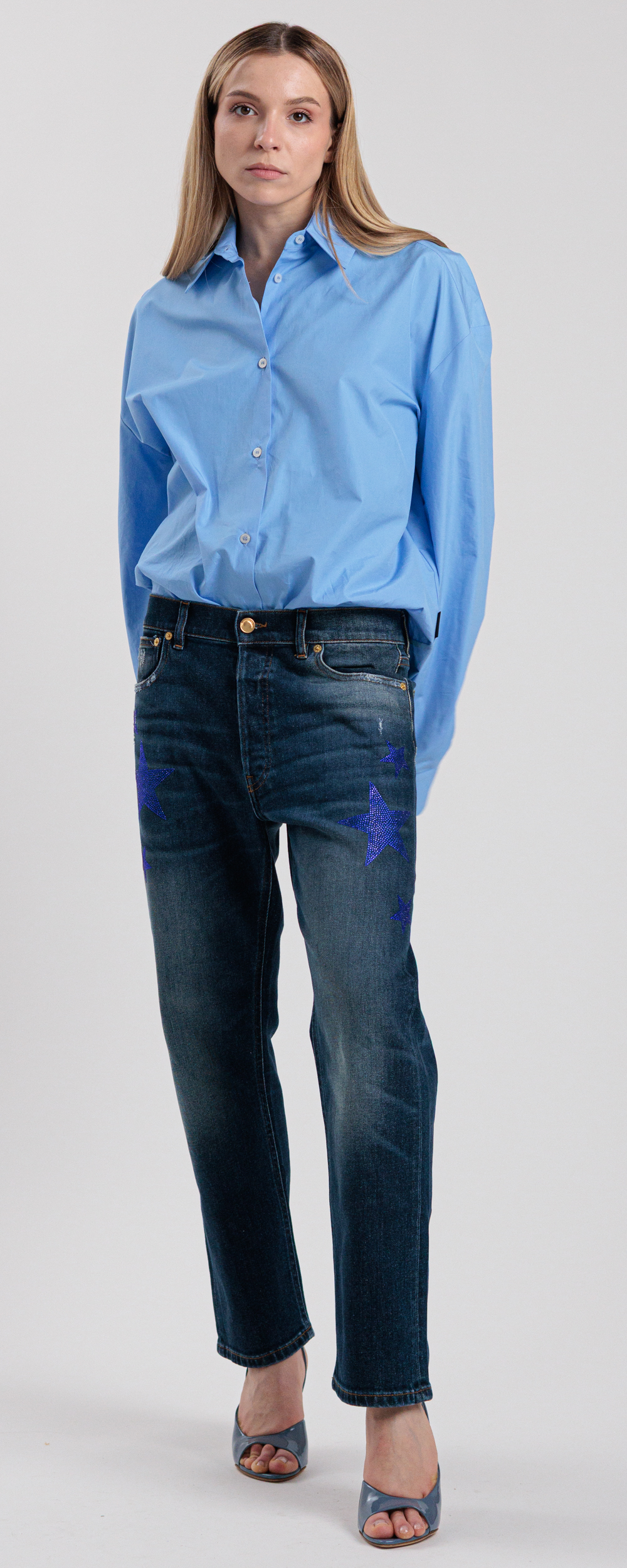 JEANS DENIM BOYFRIEND SCURO CON STELLE IN STRASS LVS051BOY 3OU2X6