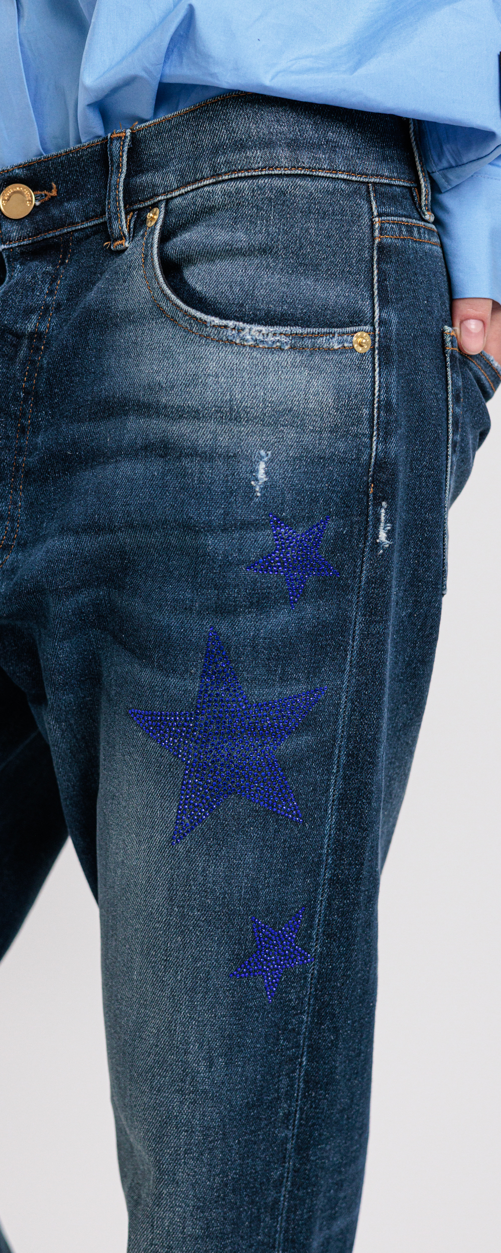 Applicazione di stelle in strass di cristallo color blue.