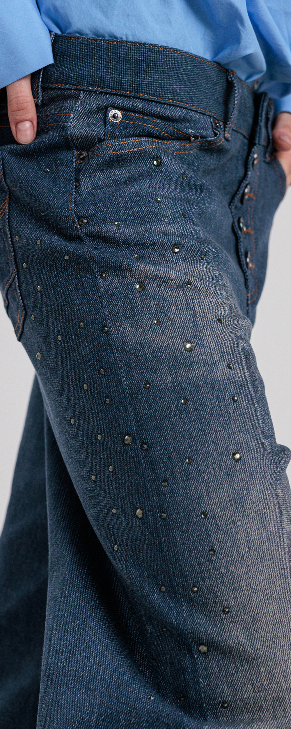 Applicazione di strass in cristallo color black diamond sparsi sui lati.