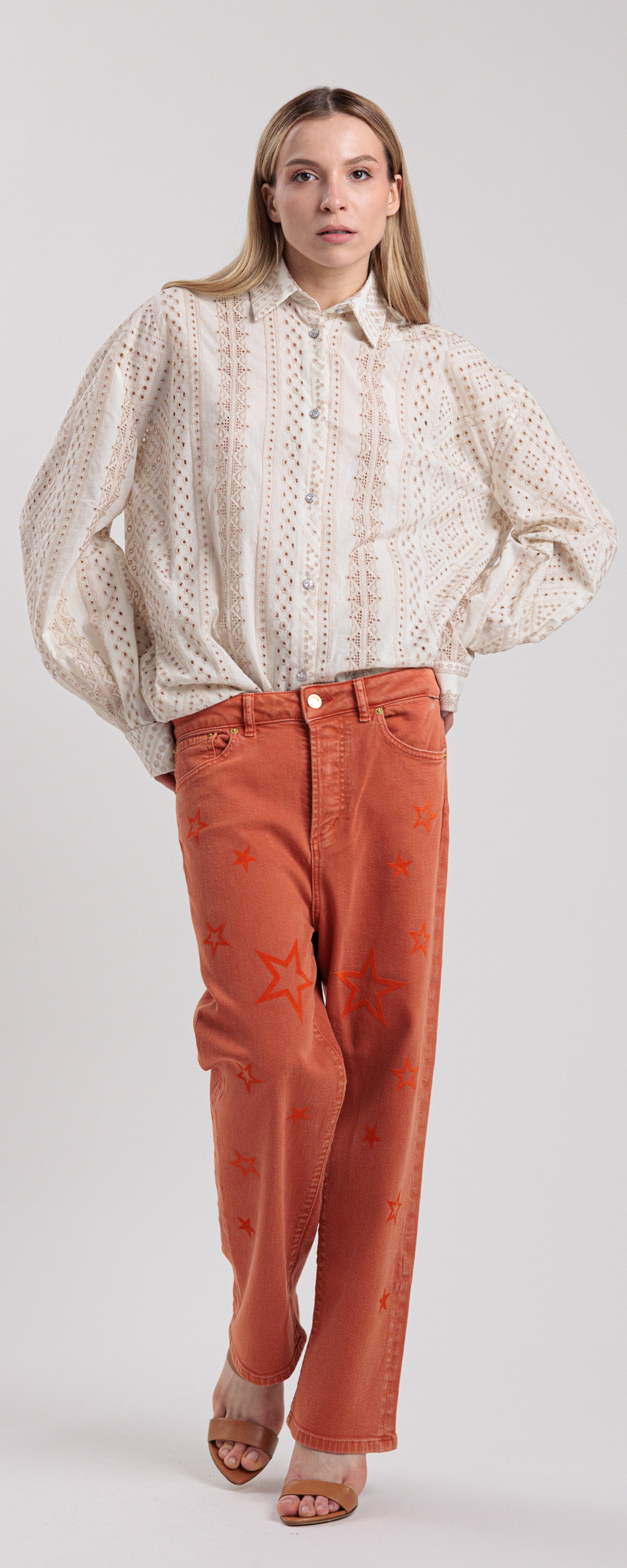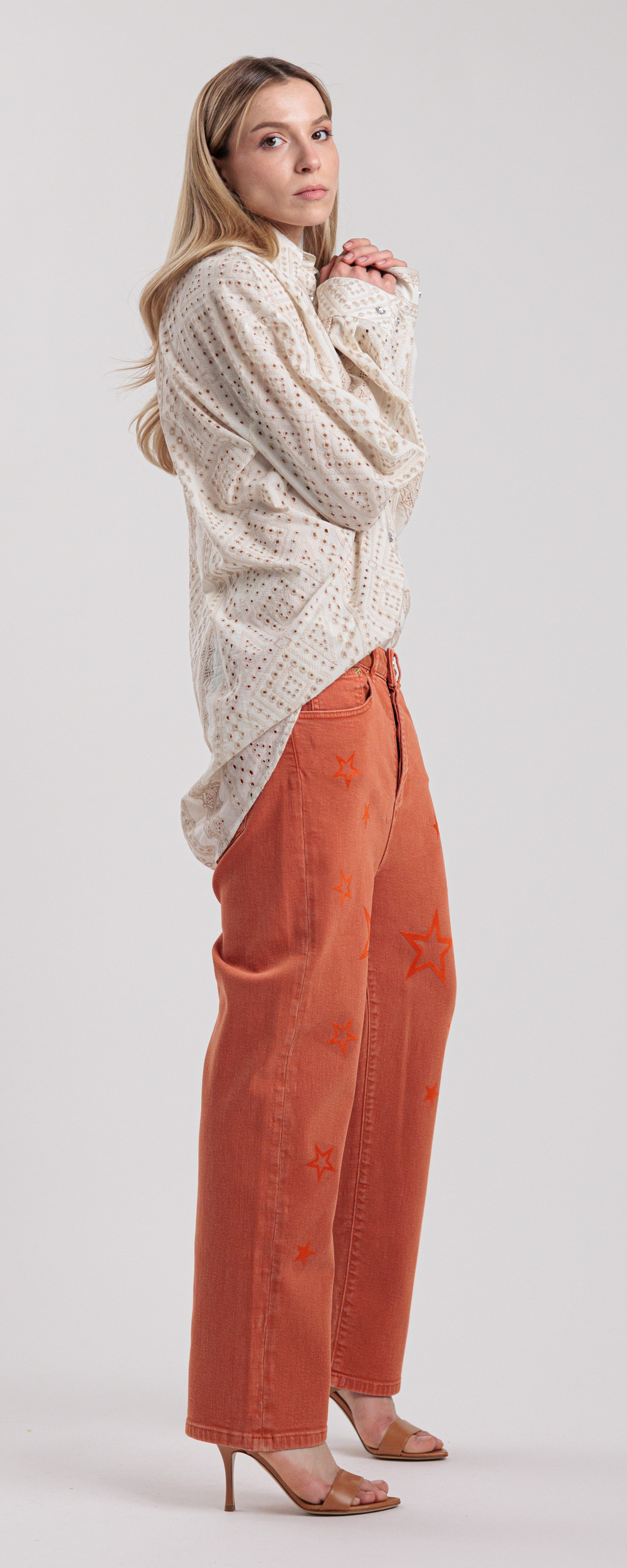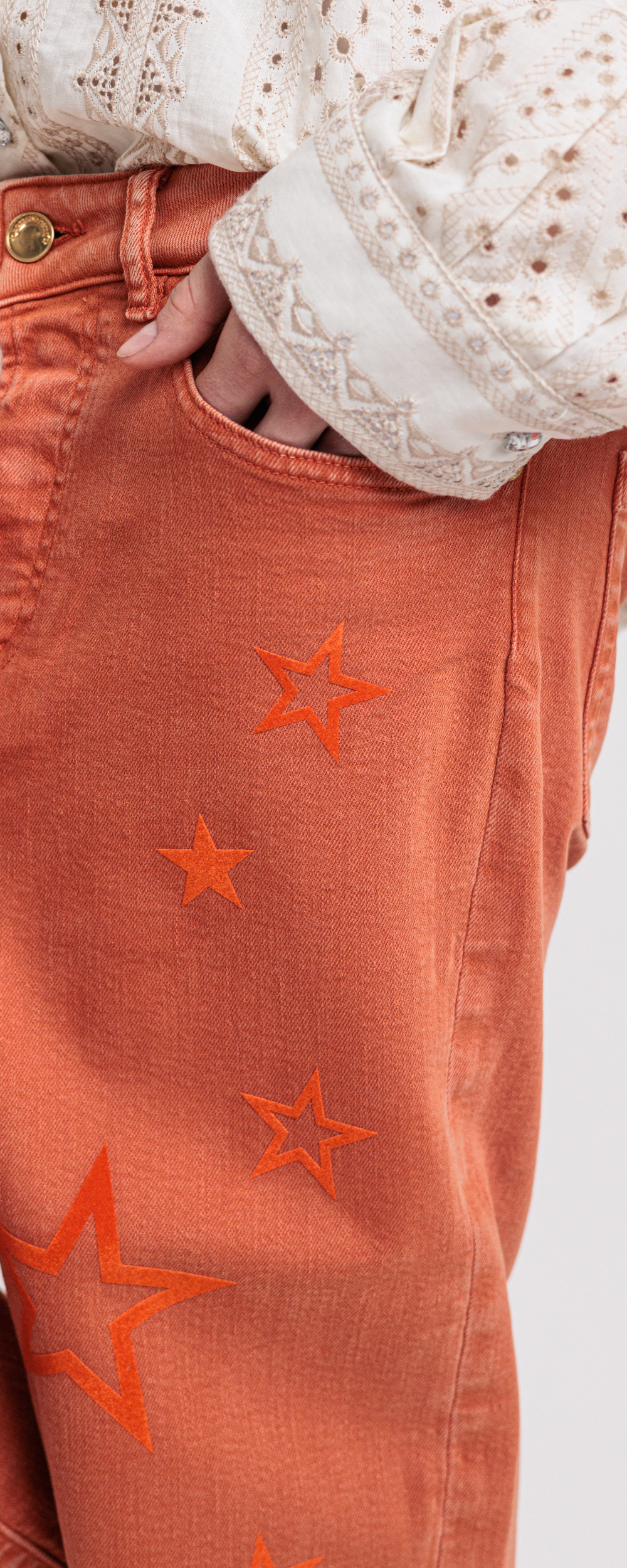 JEANS DENIM LOOSE FIT TERRACOTTA CON STELLE ARANCIO LOOSE 25OU2X6