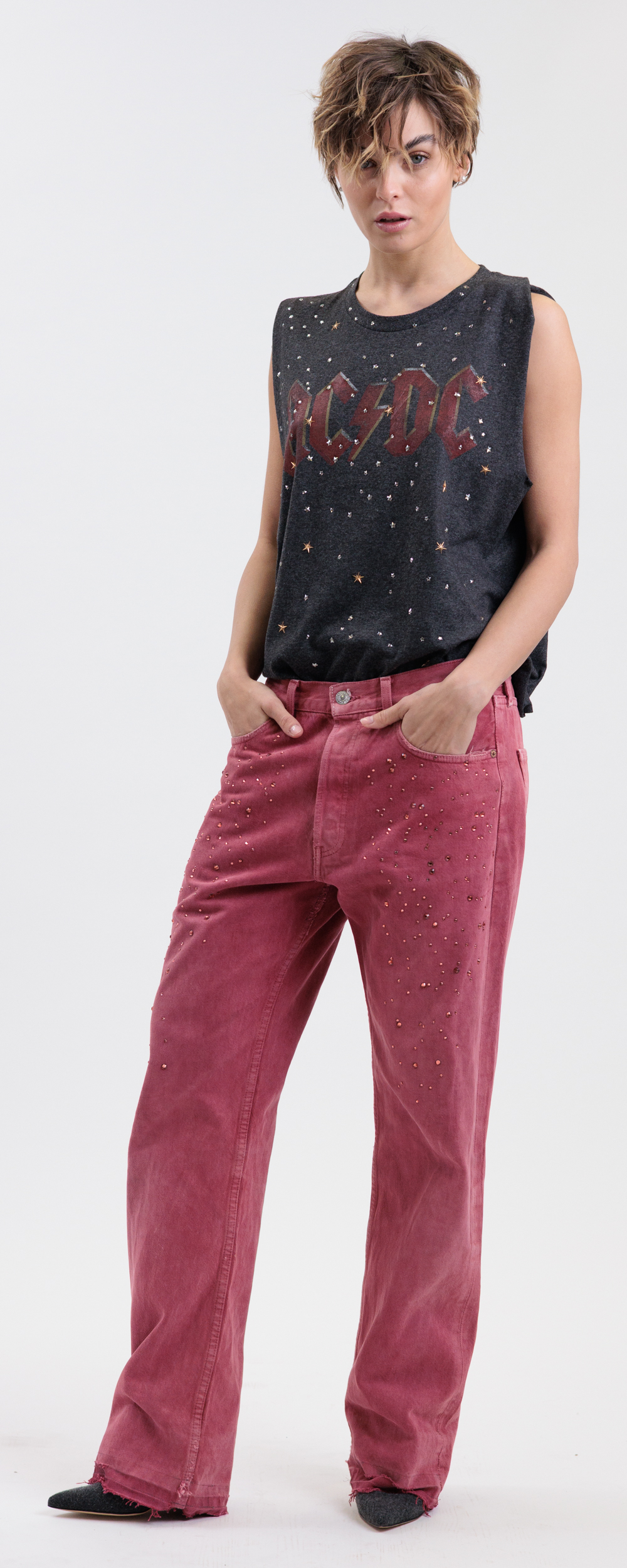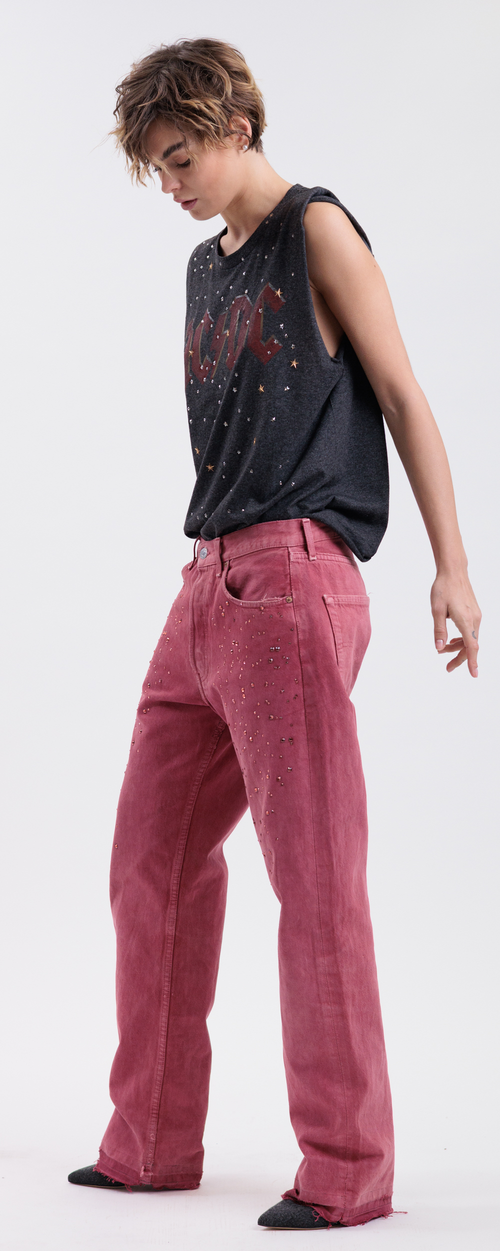 Vestibilità ampia, modello boyfriend da indossare morbido e a vita bassa.