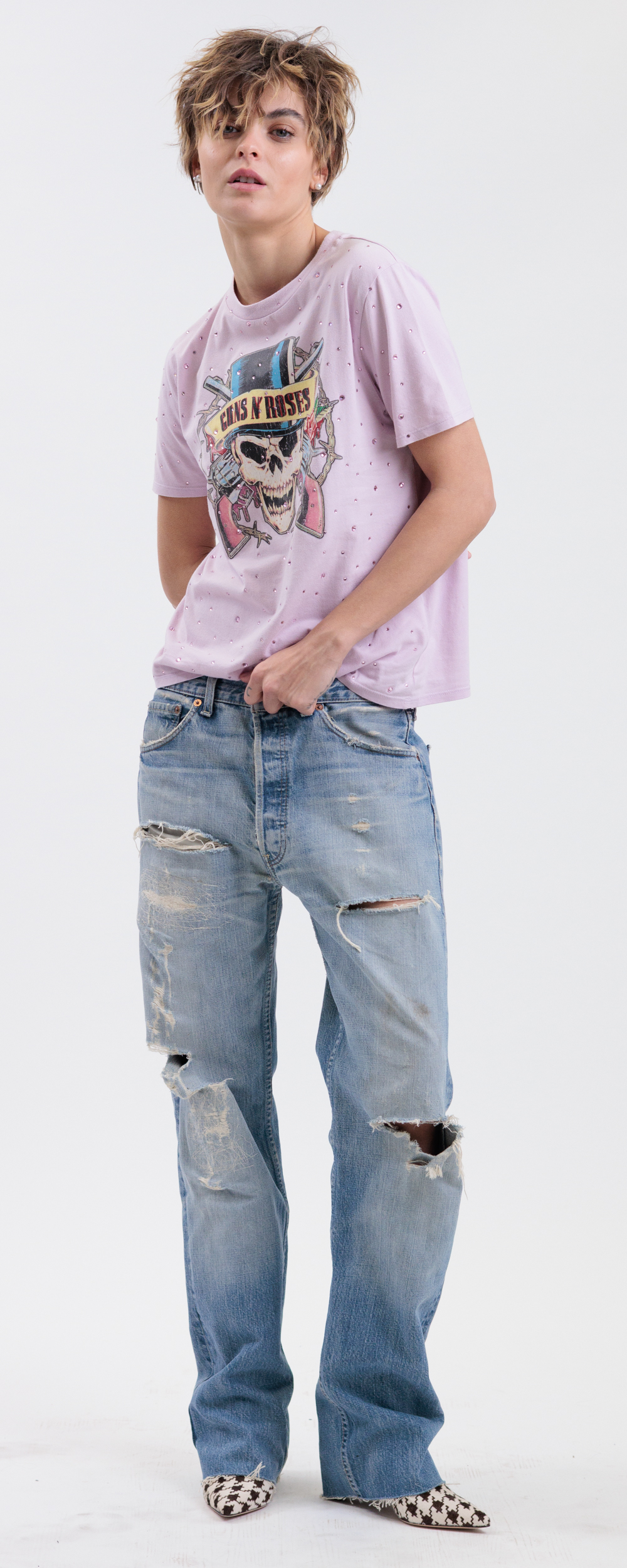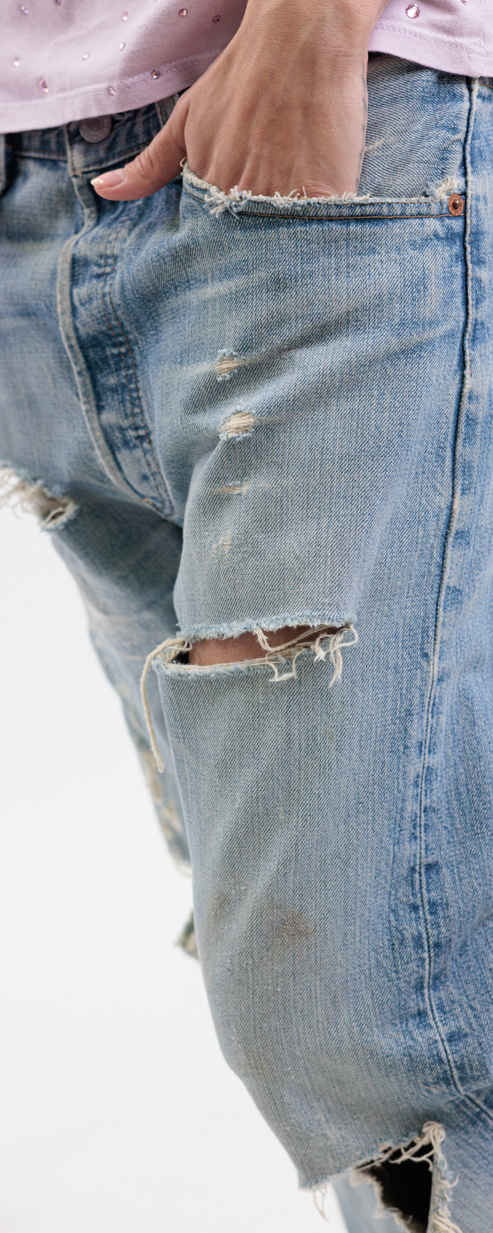 Medium stone wash, detroyed.