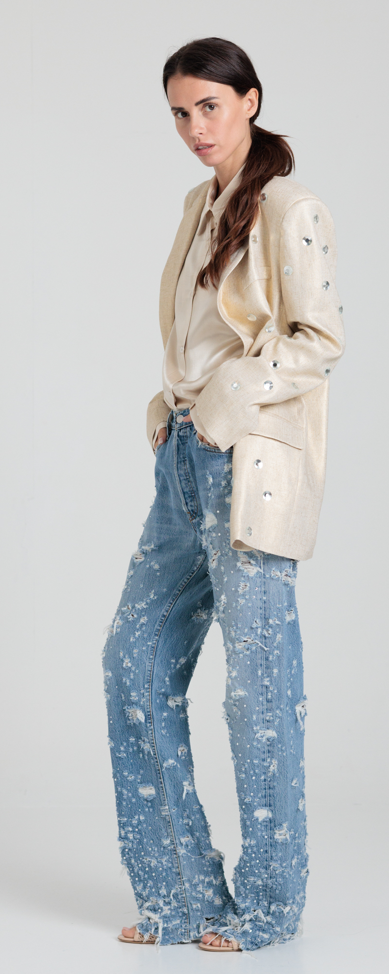 Vestibilità ampia, modello boyfriend da indossare morbido e a vita bassa.