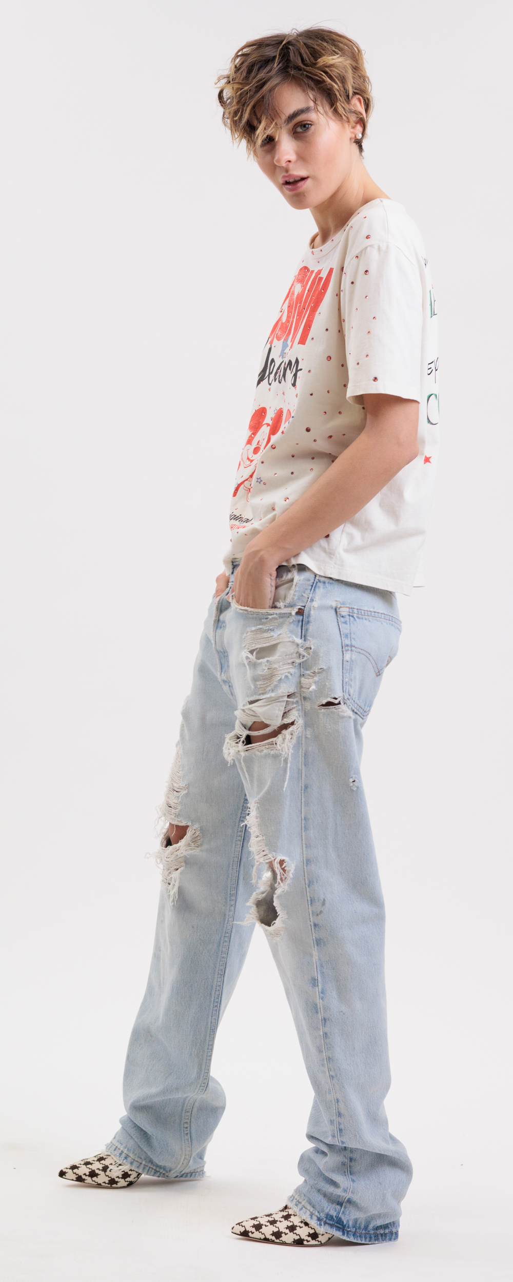 OGNI CAPO, ESSENDO VINTAGE, E’ UNICO E PUO’ MOSTRARE LIEVI SEGNI DEL TEMPO, COME MACCHIE E/O RAMMENDI, CHE NON NE COMPROMETTONO LA QUALITA’ MA NE DANNO UN VALORE AGGIUNTO E TONI DIFFERENTI DI LAVAGGIO.