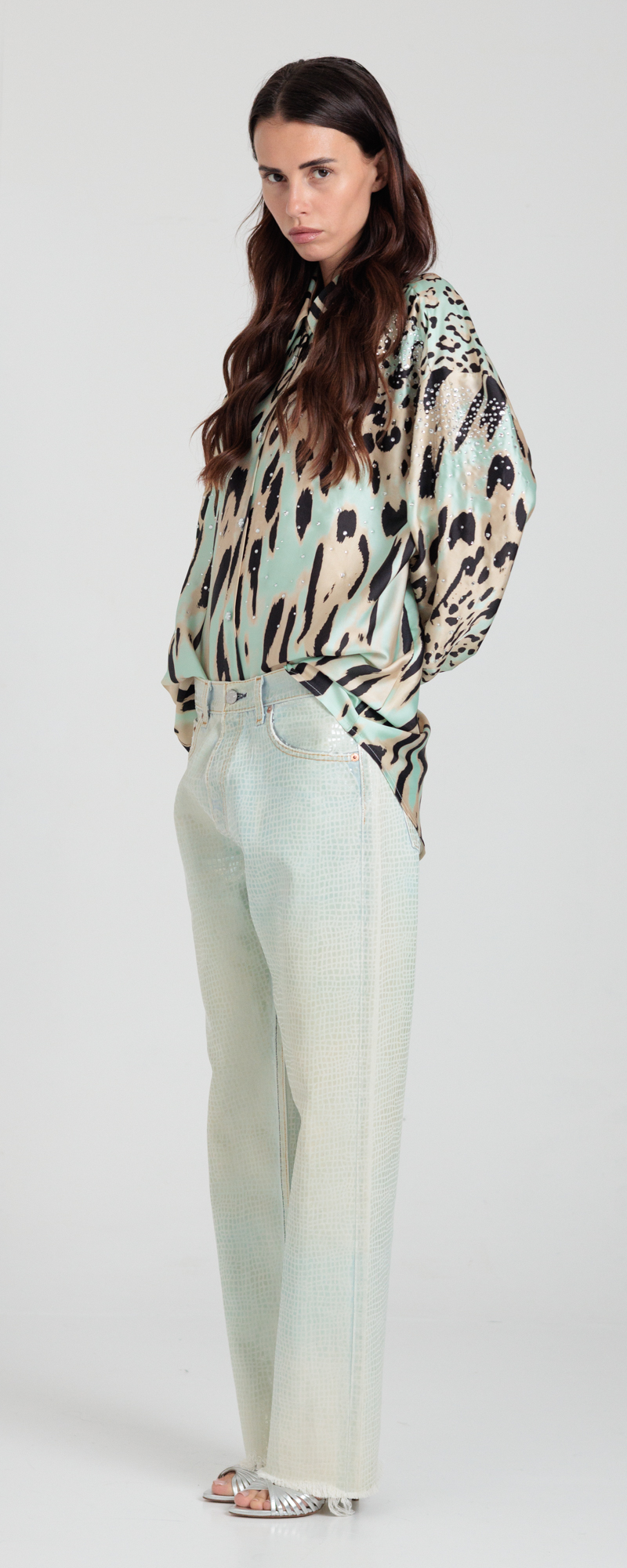 Vestibilità ampia, modello boyfriend da indossare morbido e a vita bassa.