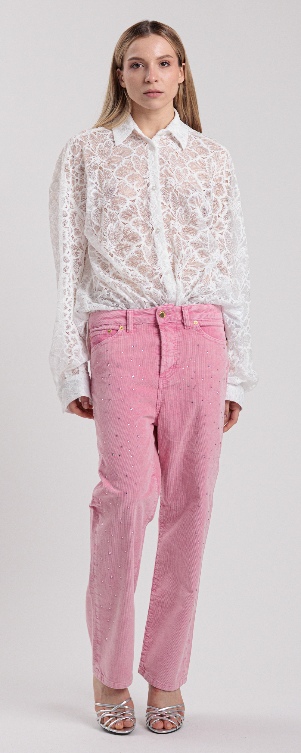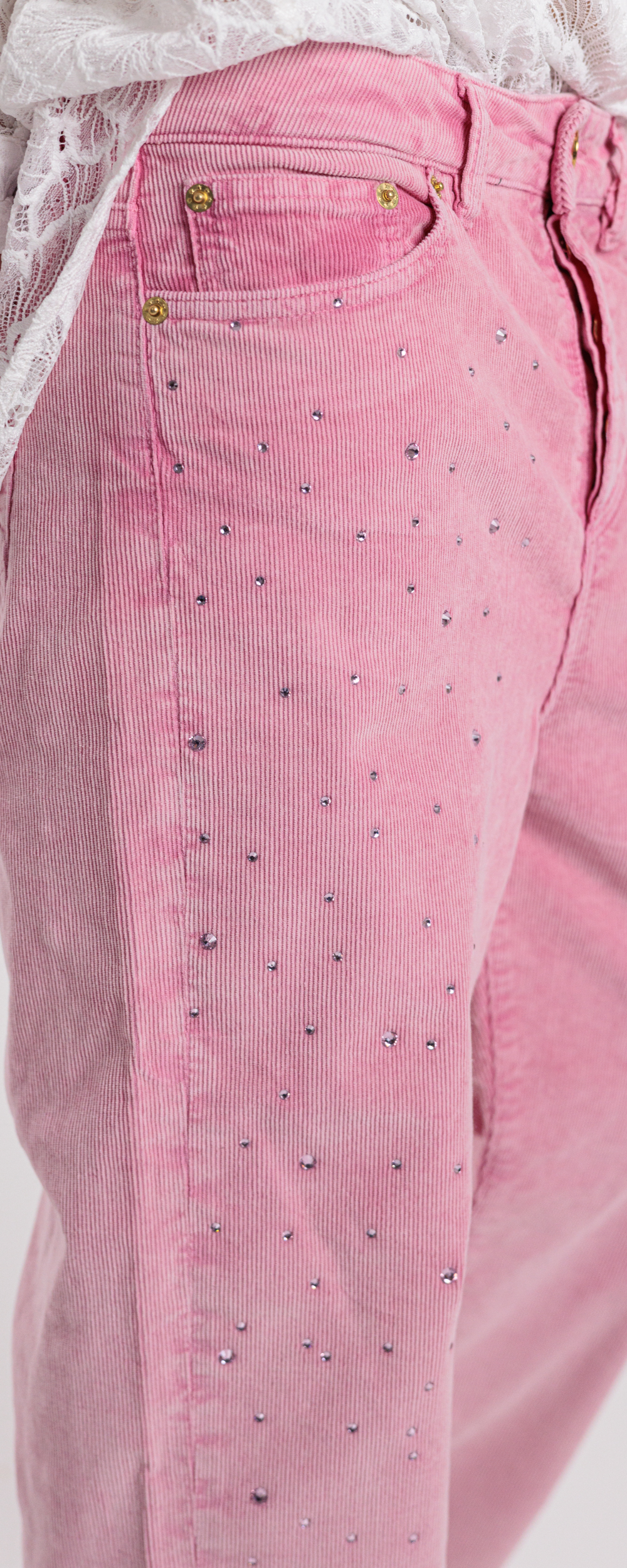 Applicazione di strass in cristallo color rose sul davanti.