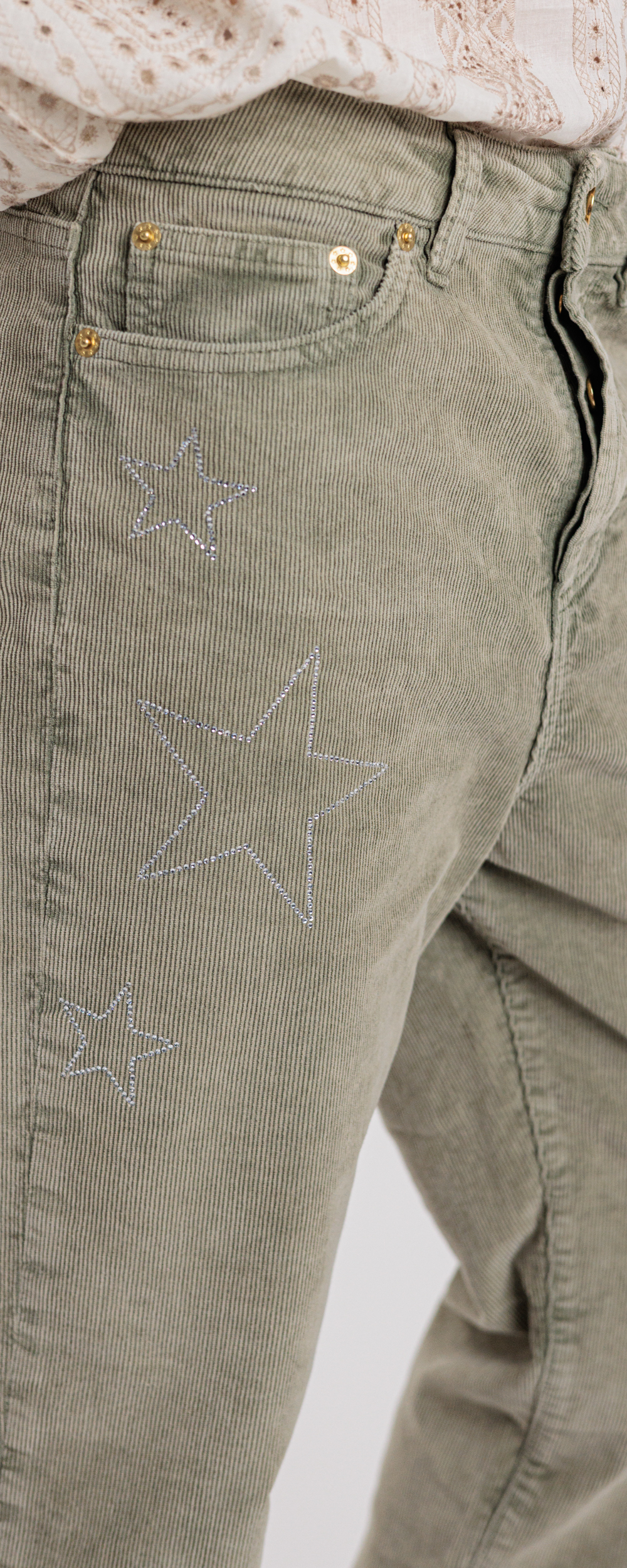 Velluto millerighe stretch, tinto salvia, effetto vintage.