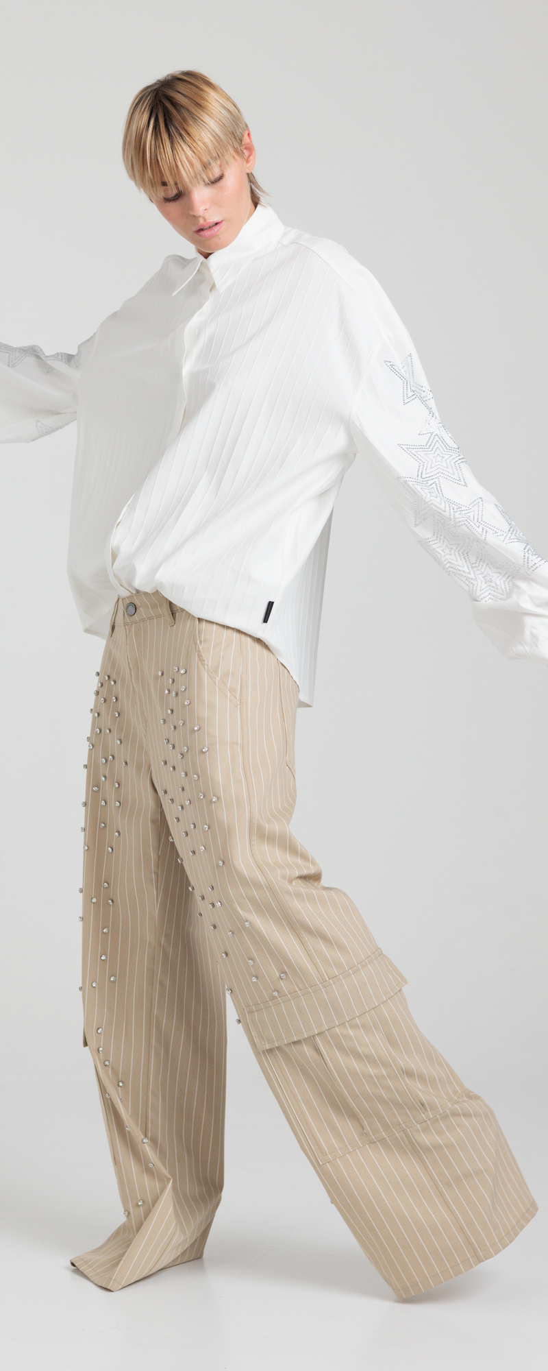 Vestibilità ampia, da indossare morbido e a vita bassa.
