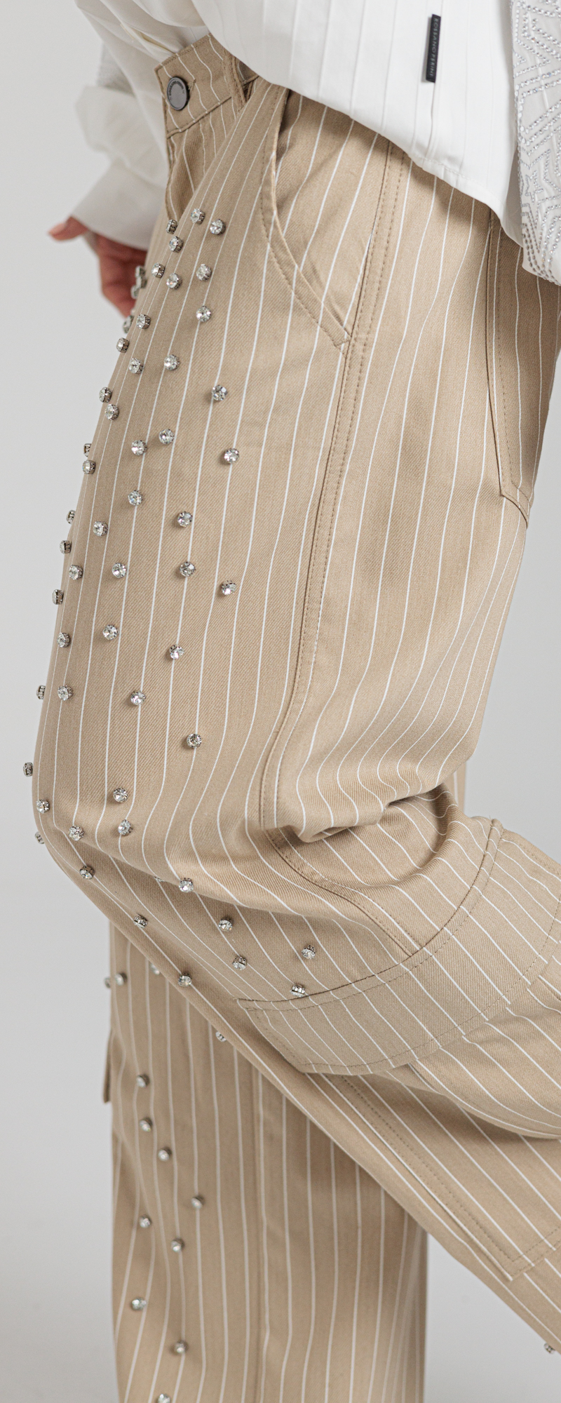 Applicazione di strass incastonati color crystal nella parte davanti in degradè.