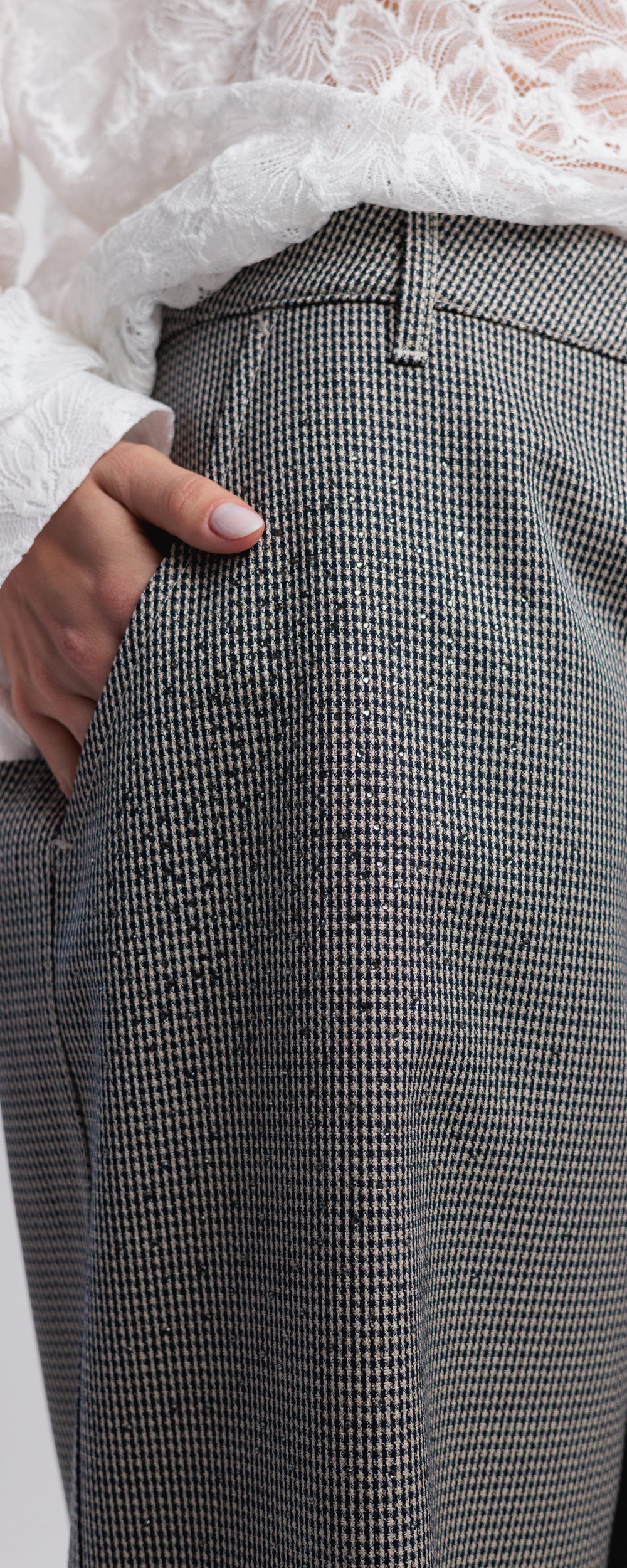 PANTALONE PALAZZO CON DUE TASCONI BEIGE E MARRONE CON STRASS COMBAT 23S26EXCLUSIVE