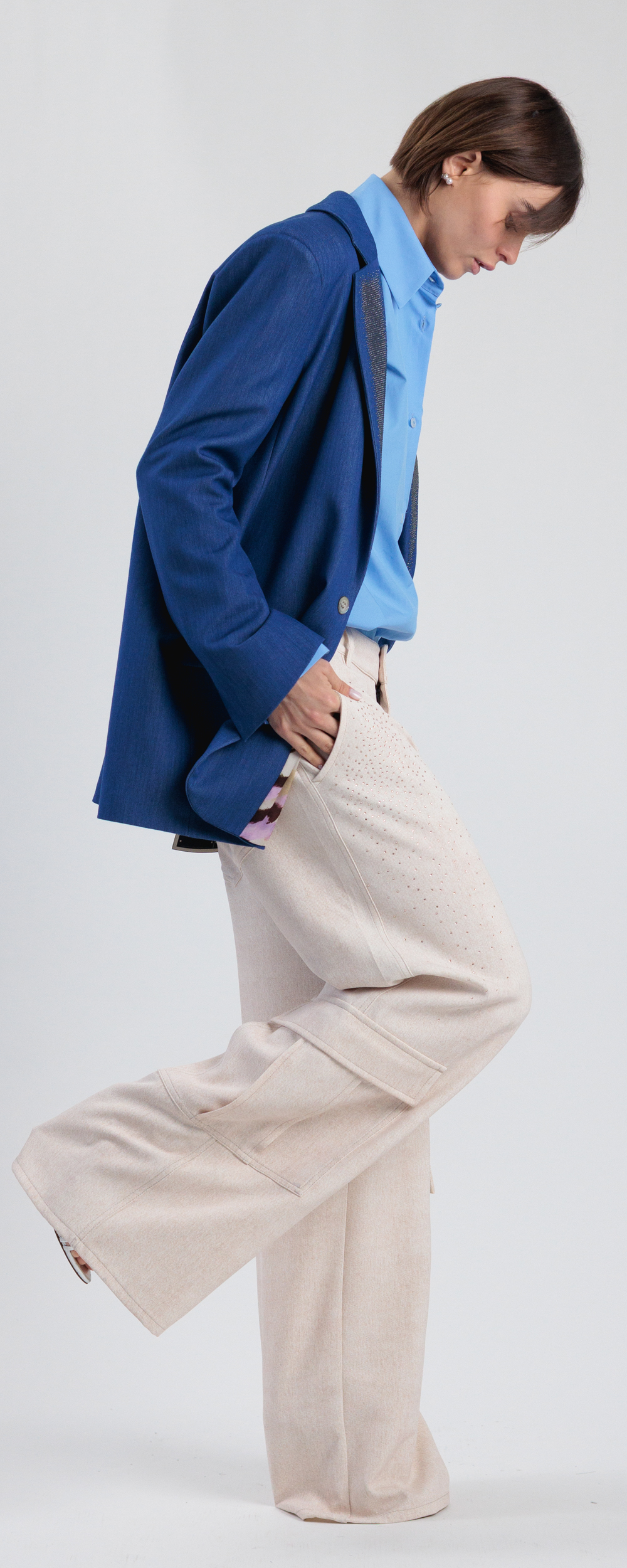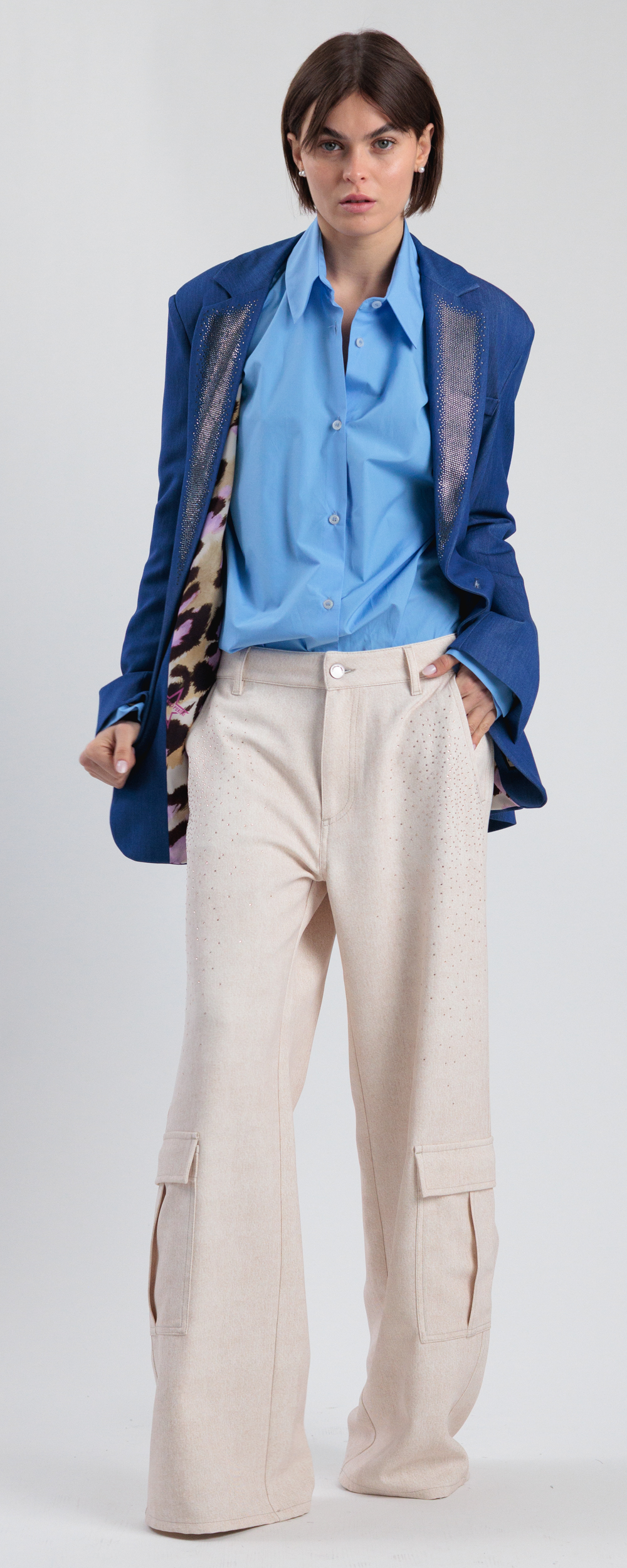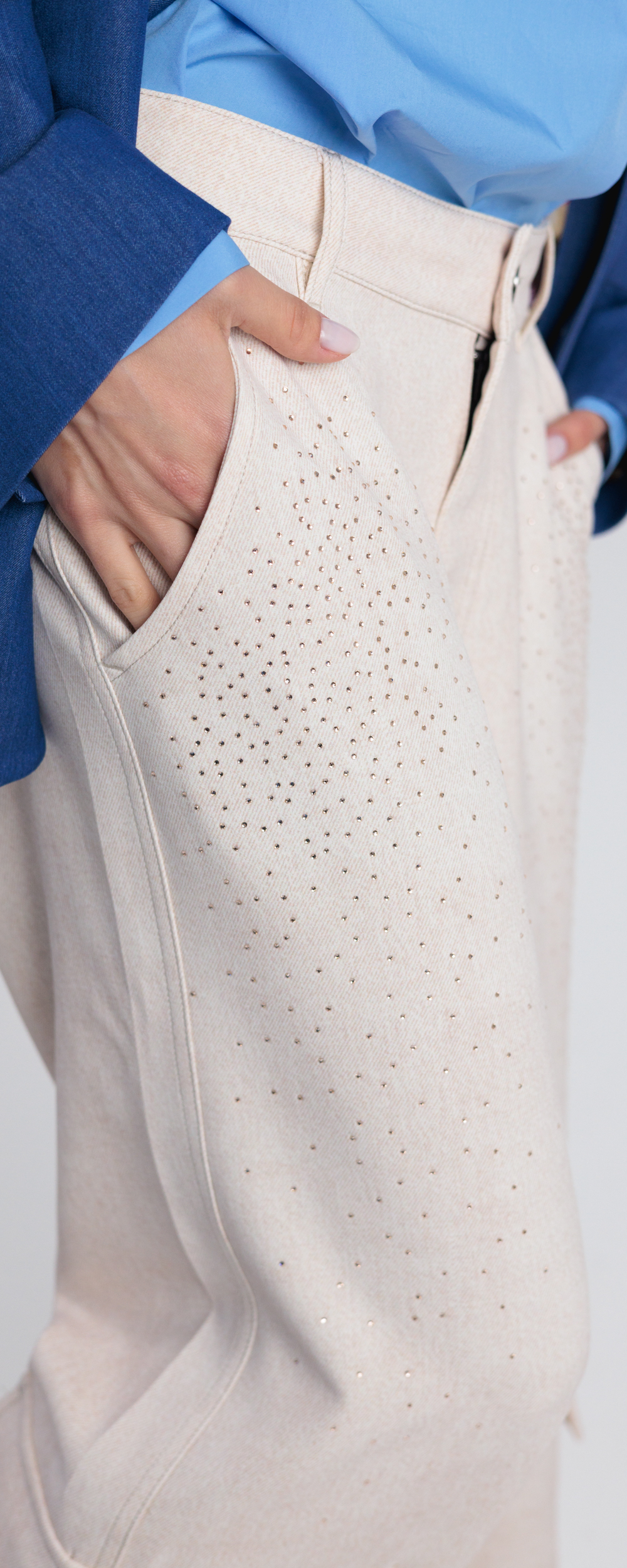 PANTALONE PALAZZO CON DUE TASCONI COLOR SABBIA CON STRASS COMBAT 16S26EXCLUSIVE