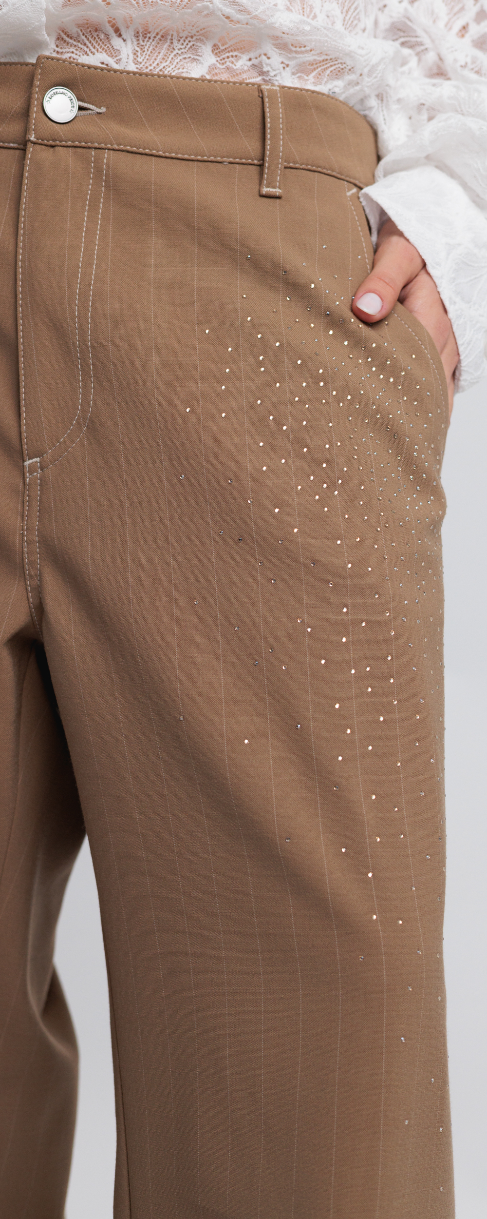 Applicazione di micro strass in cristallo color silk.