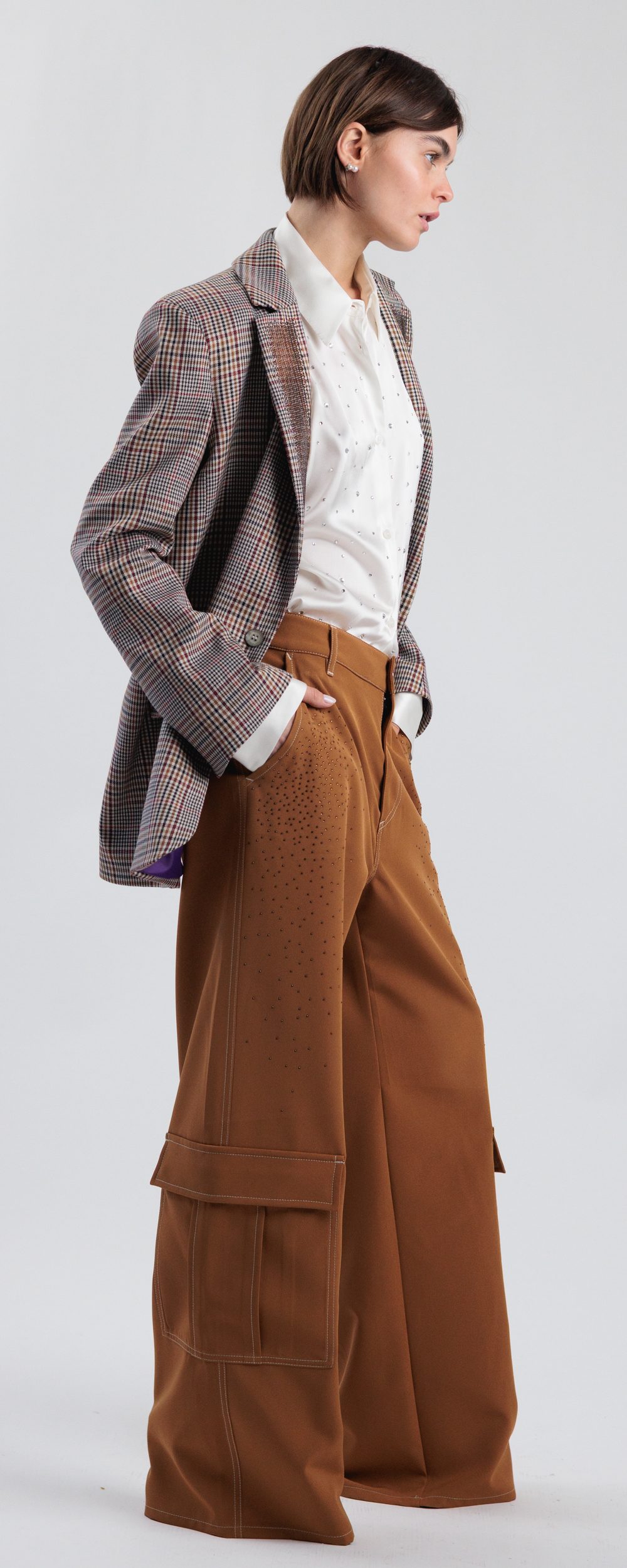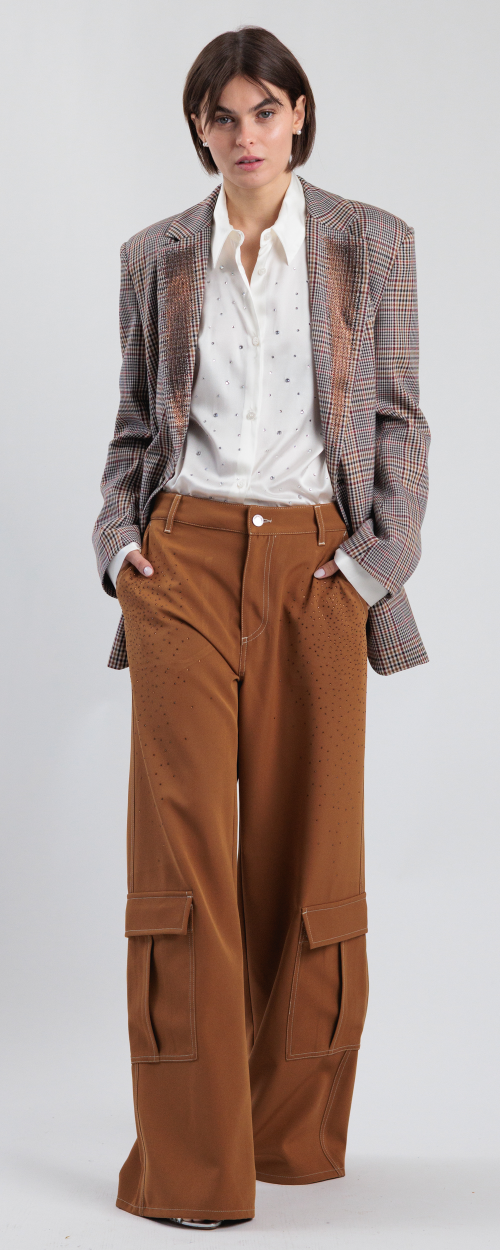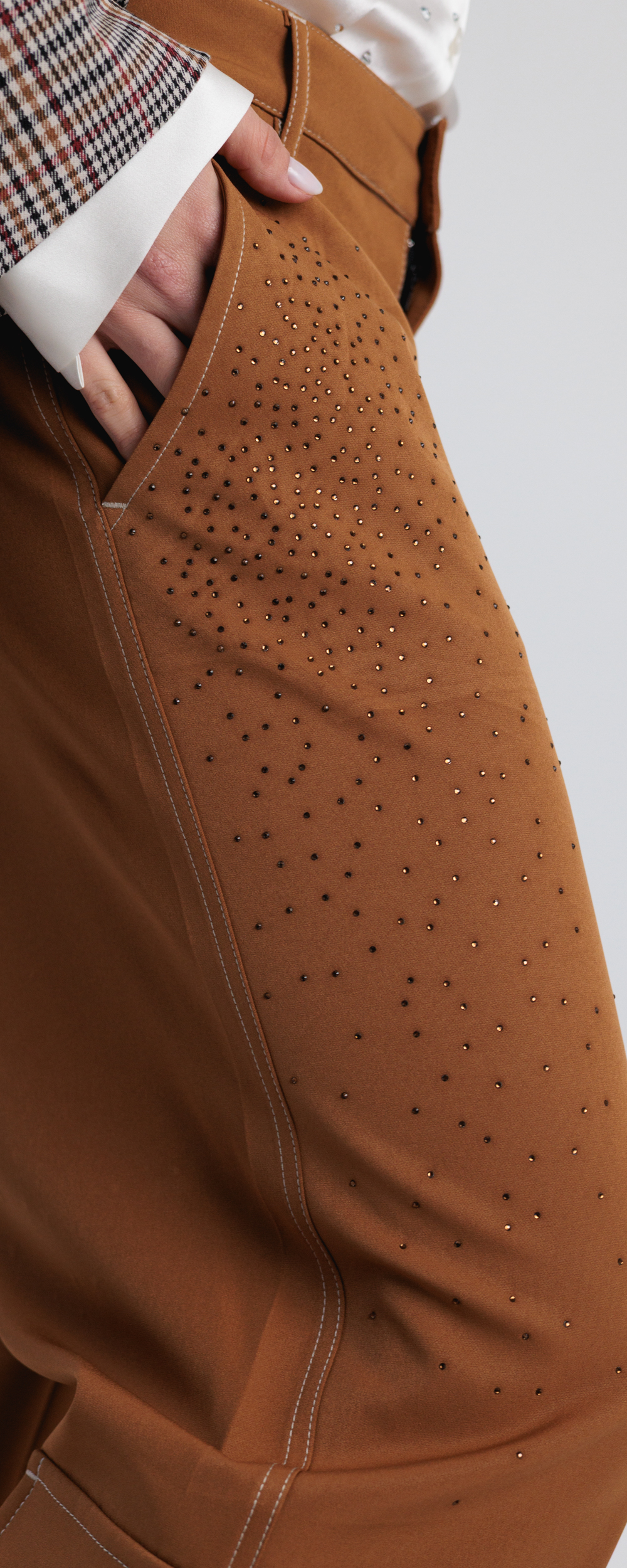 Tabacco, con applicazione di micro strass in cristallo color cioccolato.