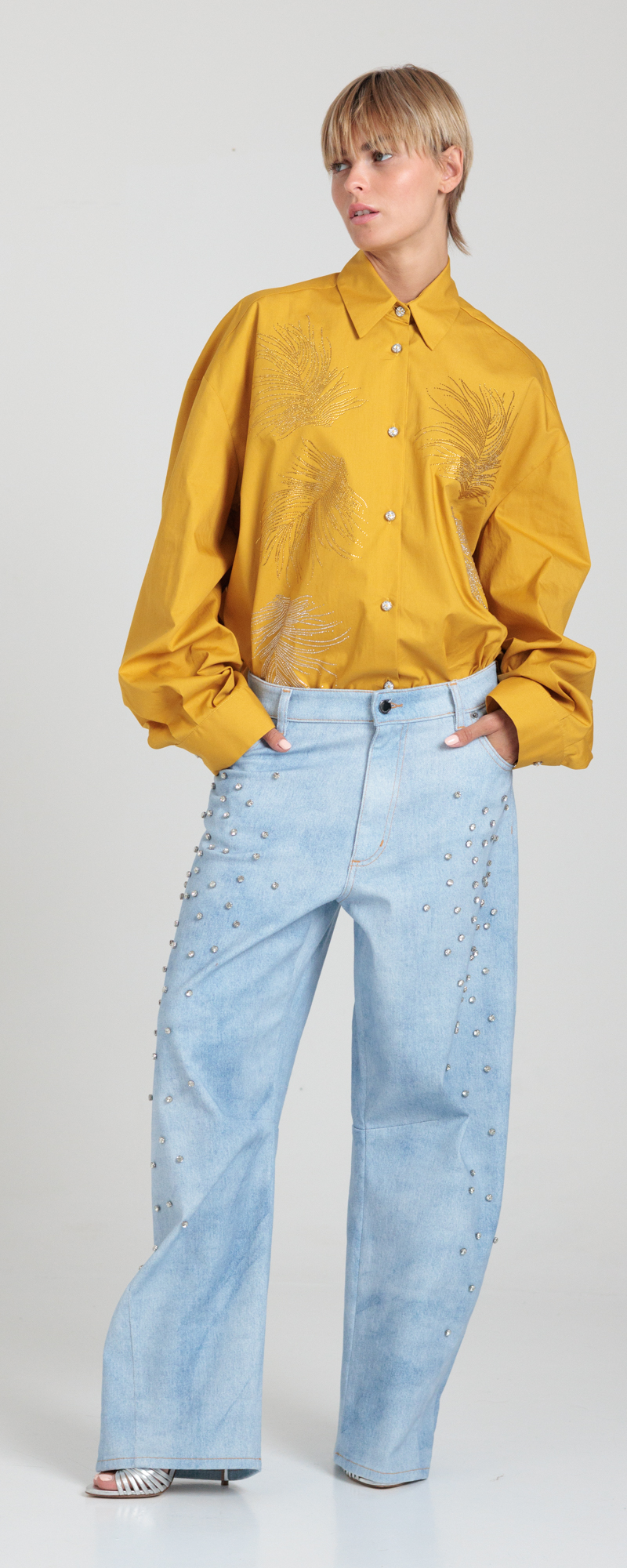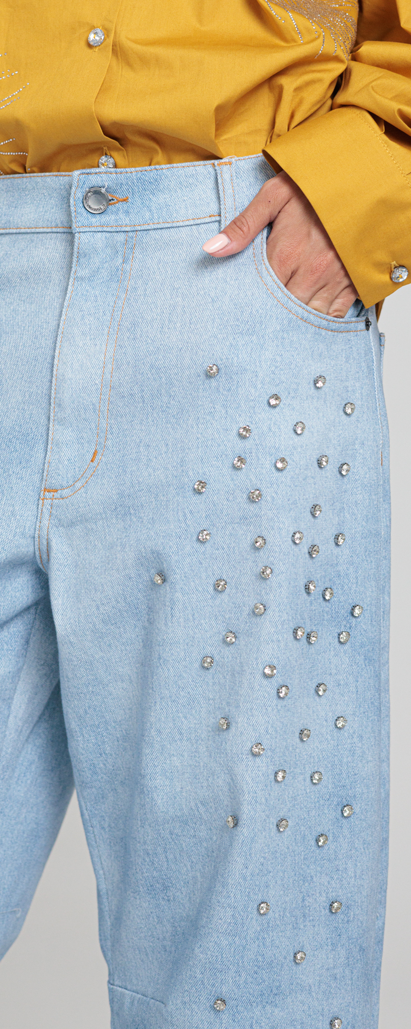 Applicazione di strass incastonati color crystal nella parte davanti in degradè.