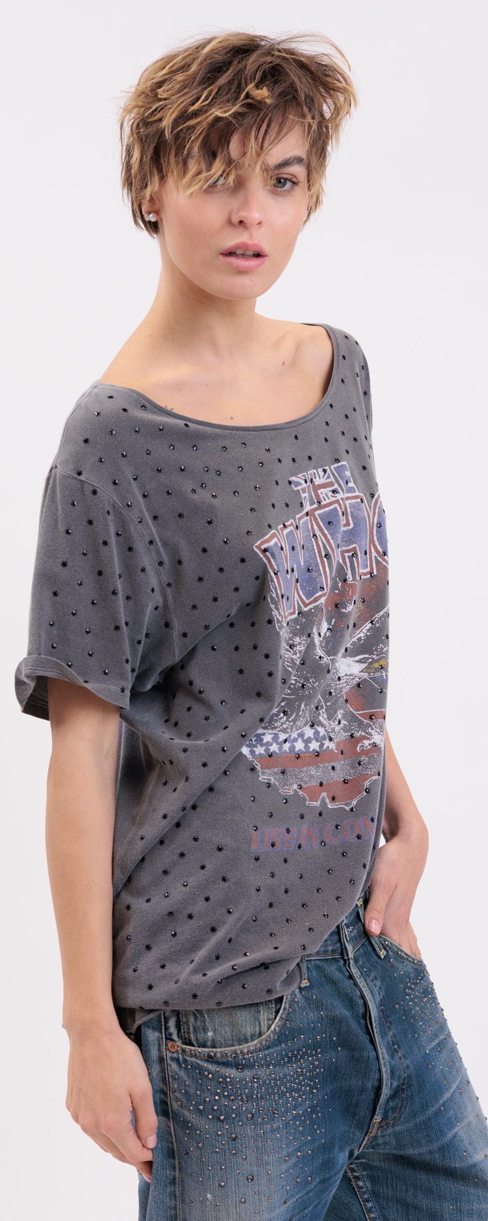T -shirt vintage grigio slavato, stampa gruppo musicale THE WHO.