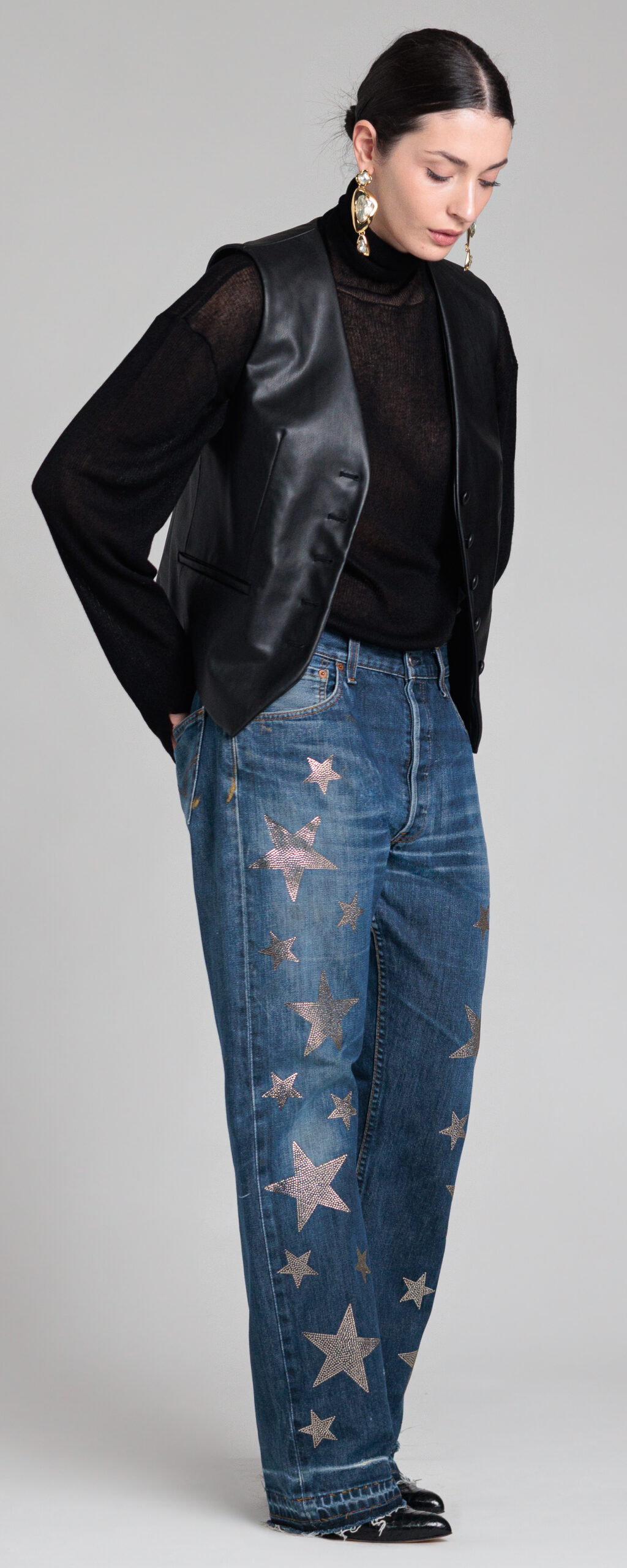 Cinque tasche ultraboy fit. Drill di cotone. Made in italy. Capo in denim scuro vintage.