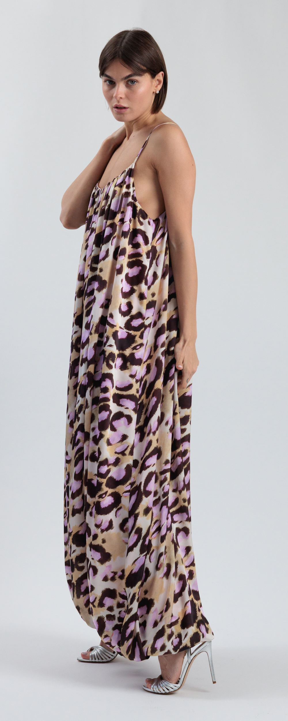 Satin stampa leopardata color rosa chiaro, cioccolato e beige.