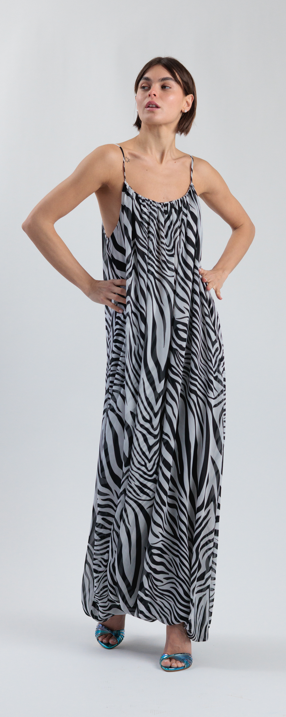 Chiffon stampa zebrata color bianco e nero.